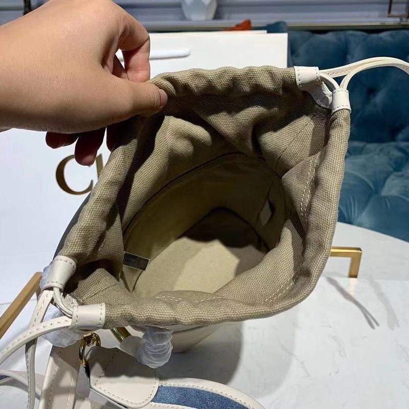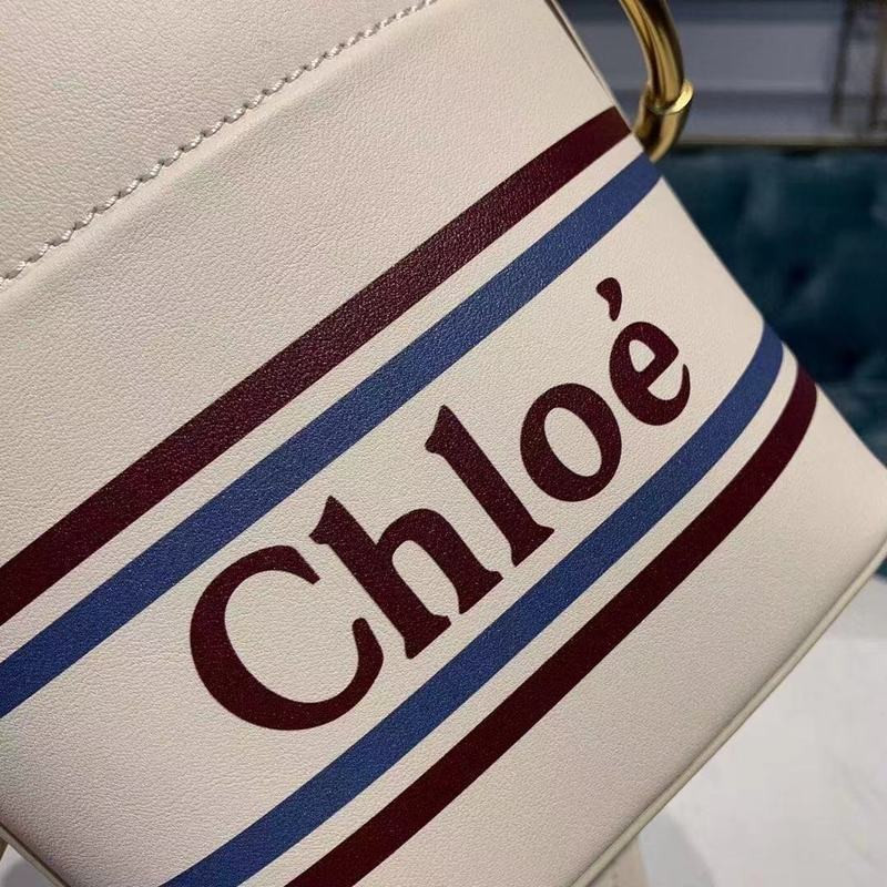 Bold logo embossing and signature pierced-ring hardware brand a smooth leather bucket bag styled with a duo of straps for carrying versatility. Carry handle at top. Adjustable and detachable shoulder strap featuring white suede inlay and lanyard clasp fastening. Stripes and logo bonded in white and red at face. Logo-engraved hoop hardware at sides. Extended beige canvas lining with drawstring fastening at throat. Logo patch at interior. Beige canvas lining. Bumper studs at base. Gold-tone hardware.