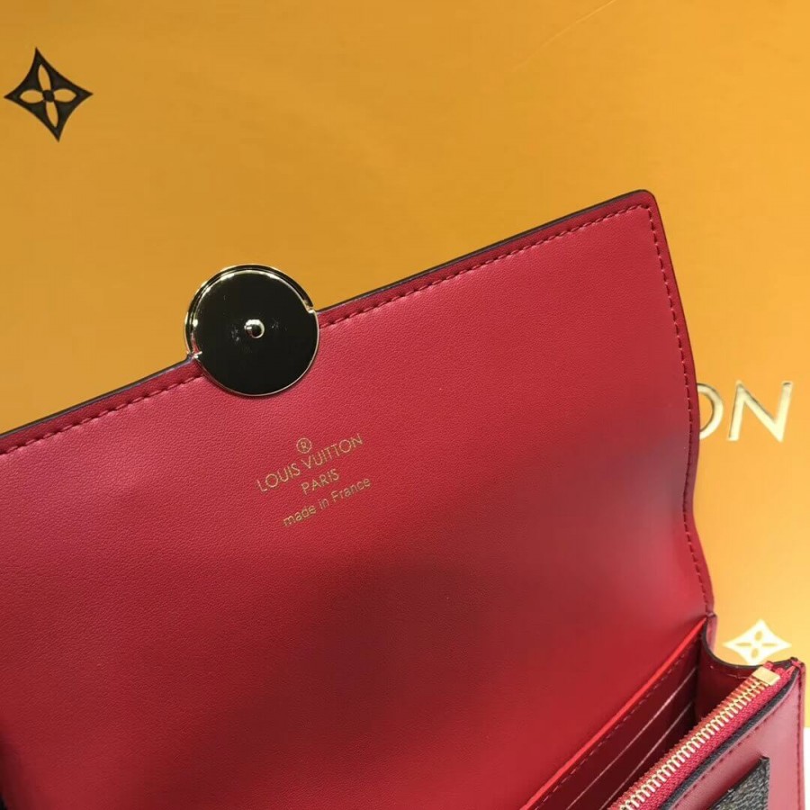 Combining Monogram canvas and calf leather, the Flore chain wallet features a distinctive clasp in the shape of a Monogram Flower. This feminine design is large enough to hold a smartphone as well as other everyday essentials, and can be carried as a clutch, on the shoulder or across the body.