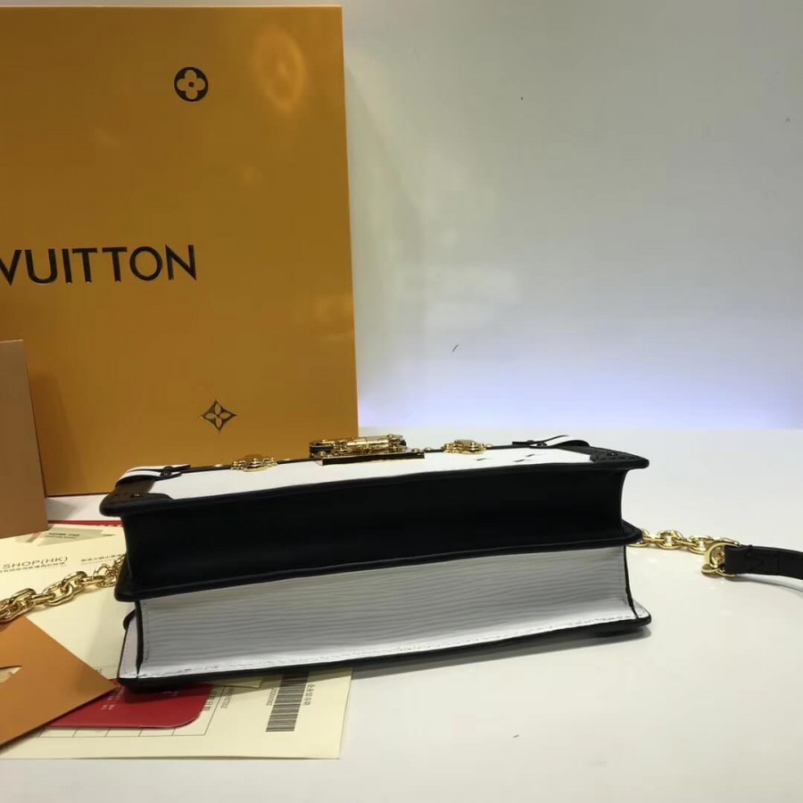 The Trunk Clutch handbag nods to House heritage with a host of refined details inspired by classic Louis Vuitton trunks: note the S-lock clasp, leather trim and Malletage-print lining. Supple yet structured, made from textured, deep-dyed Epi leather, it is also lightweight, with room enough for everyday essentials. A removable chain-and-leather strap multiplies the carry options for this fashionable, signature piece.