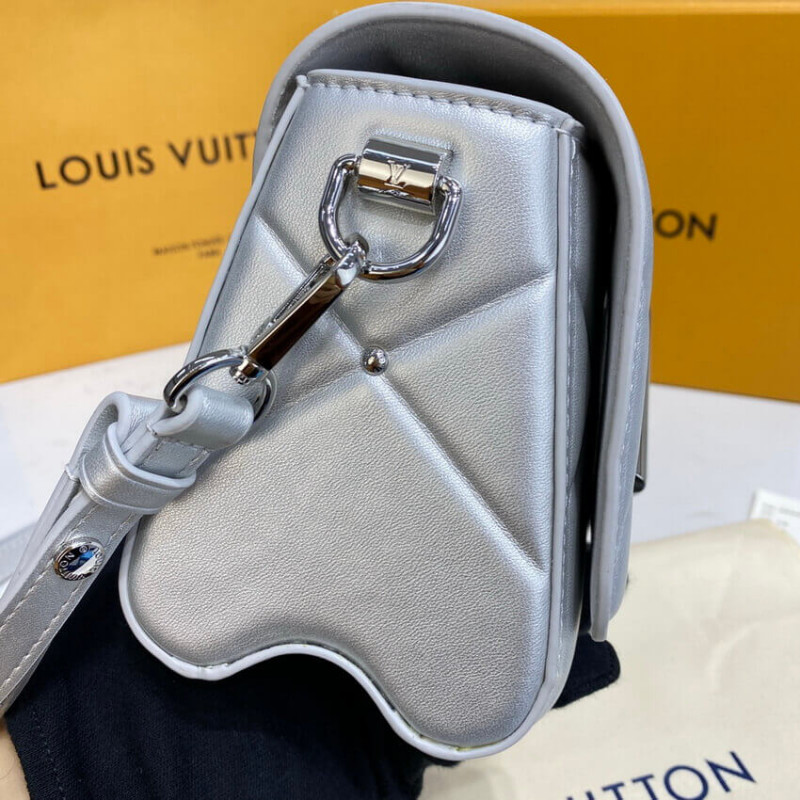 Inspired by winter ice, this scintillating Twist PM handbag is fashioned from sheepskin leather in a radiant silver that’s truly eye-catching. The shimmering effect is enhanced by the silver-color LV Twist lock, rivets and chain. It can be worn on the shoulder or cross-body thanks to its detachable and adjustable leather strap.