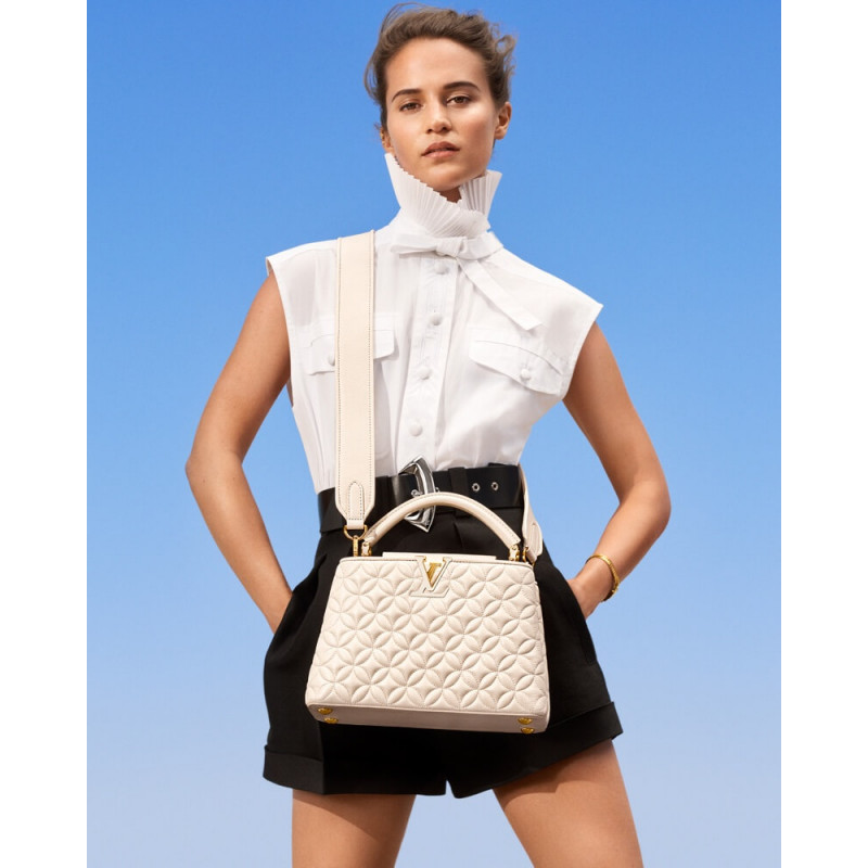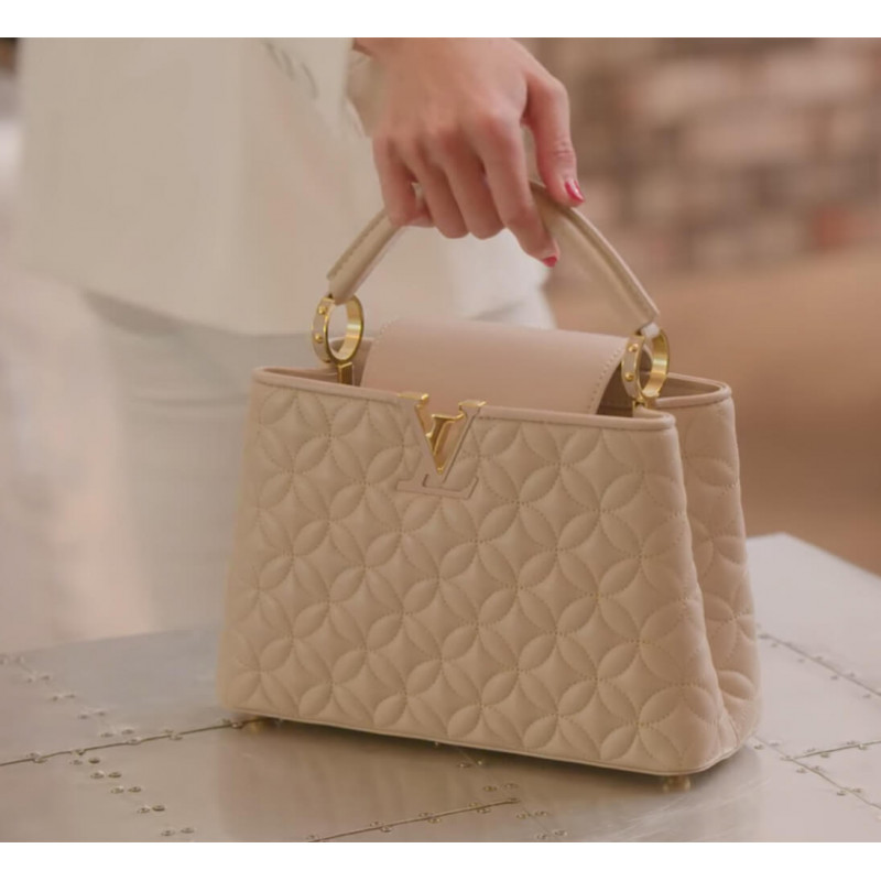 The elegant quilting of this Capucines BB handbag subtly reprises the Monogram Flower design, a pattern that also features in the decor of Louis Vuitton stores. Both the body and trim of this sophisticated model are crafted from soft lambskin. The bag’s removable strap is extra wide, for an especially comfortable shoulder or cross-body carry.