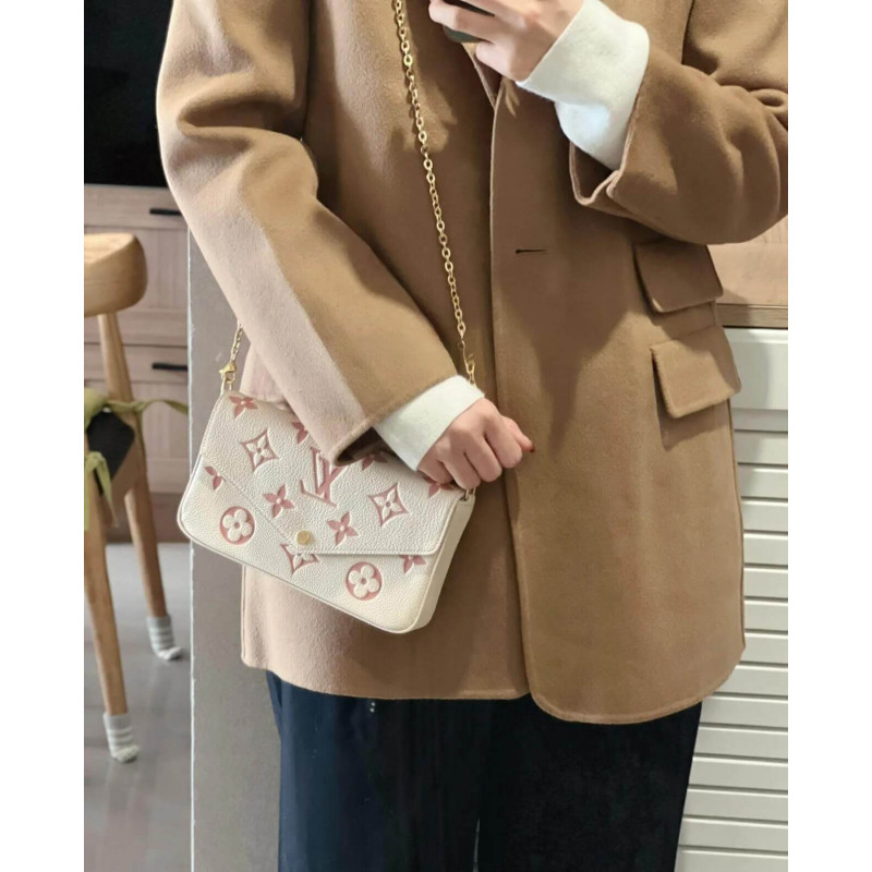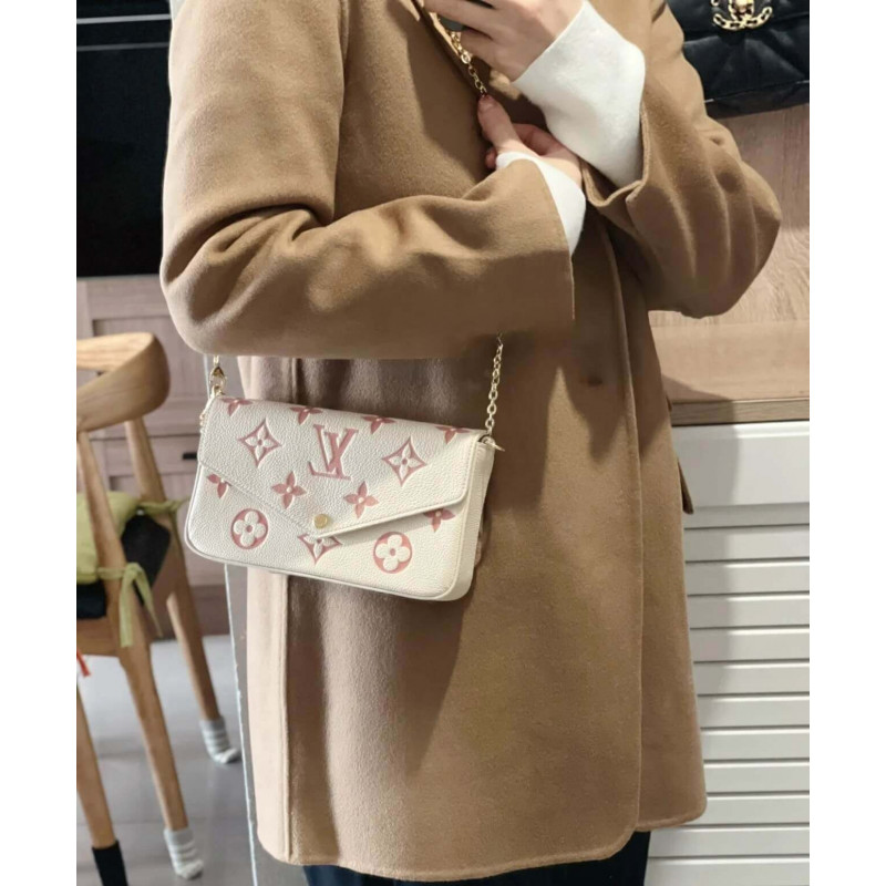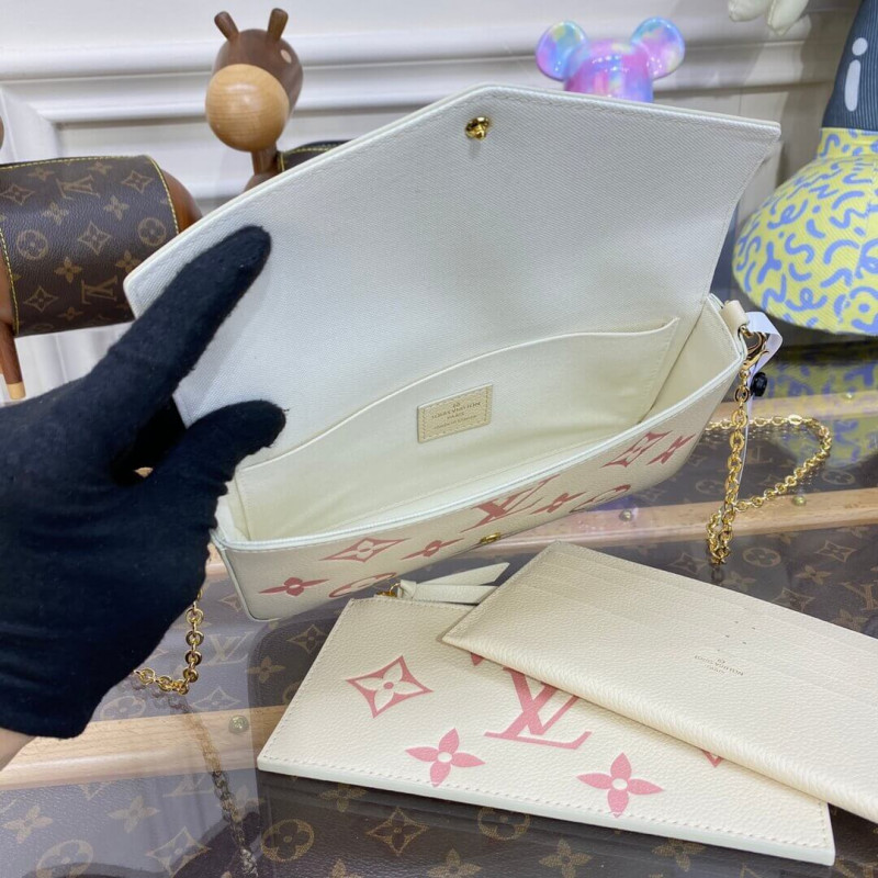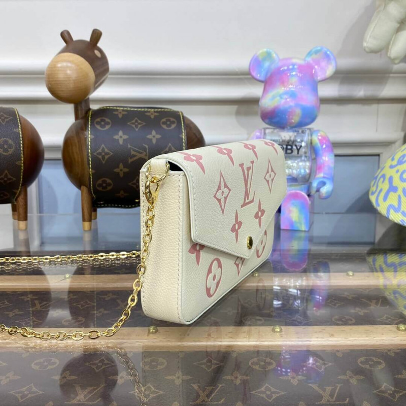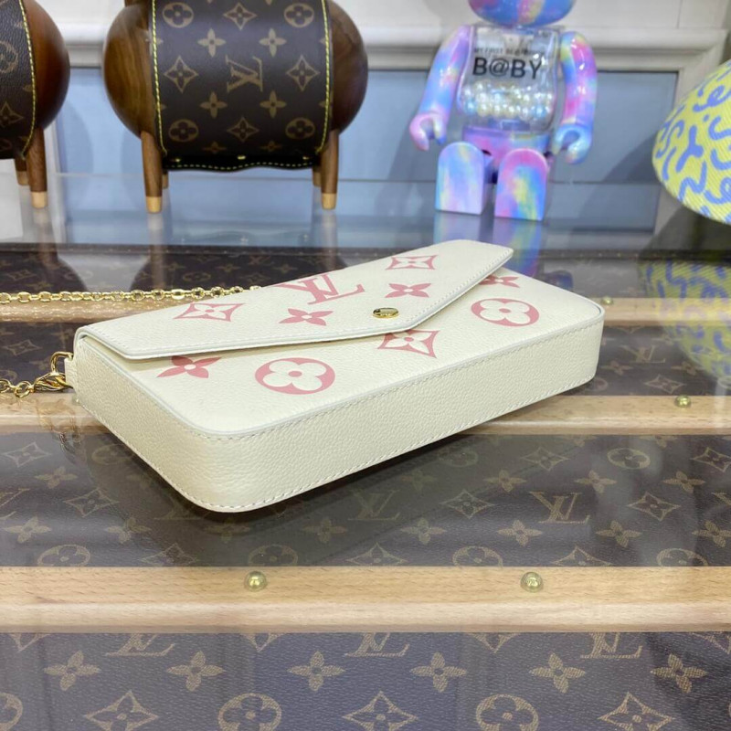 Made from Tourterelle Grey Monogram Empreinte leather, the Pochette Félicie pouch is decorated with a Monogram print in a cream colour. This stylish envelope-style pouch features two removable inside pockets. It can be carried as a clutch or worn on the shoulder, thanks to its detachable gold-colour chain.