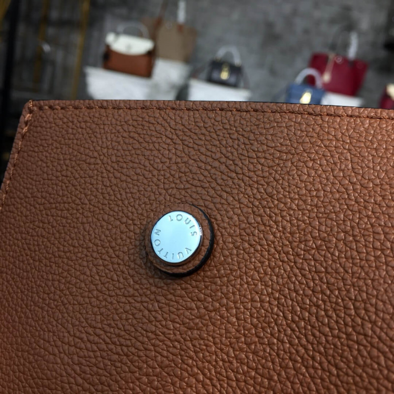 Dedicated to the elegant, active woman, this Lockme Go tote offers both flawless functionality and uncompromising style. Crafted from soft, grained calfskin, with double handles designed for comfortable over-the-shoulder wear, this essential modern carry-all is accented with a silvery LV turn lock and two snap buttons to keep belongings secure.