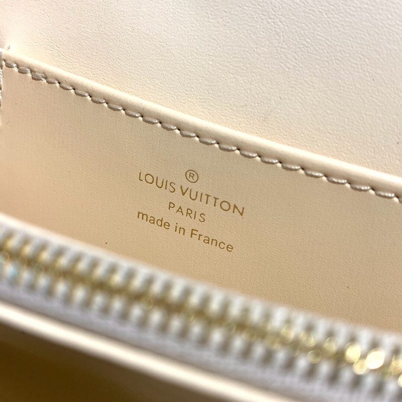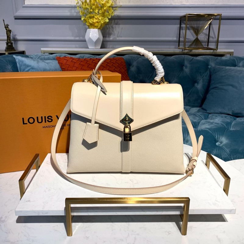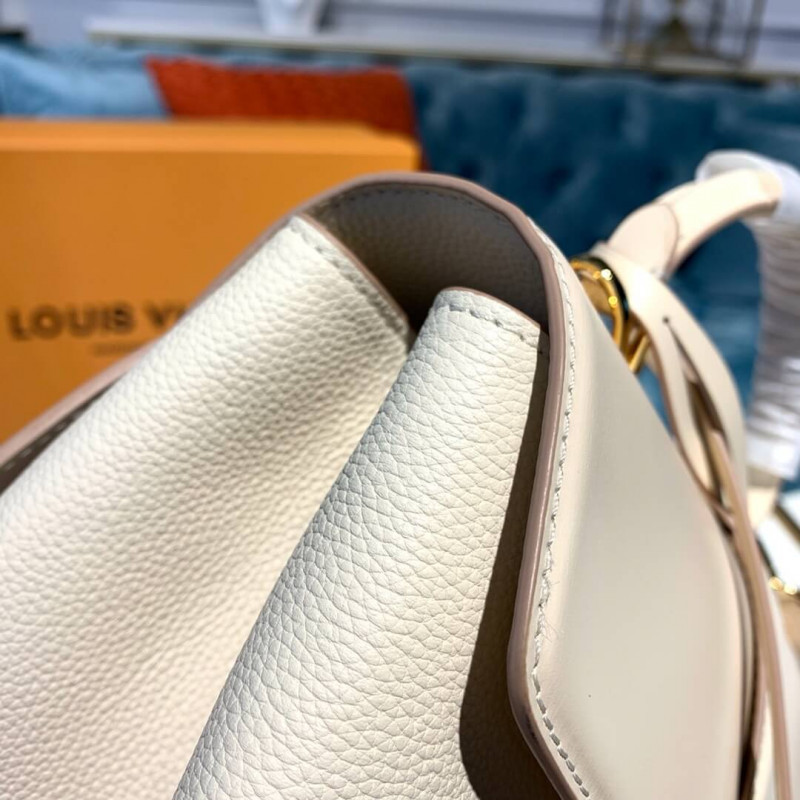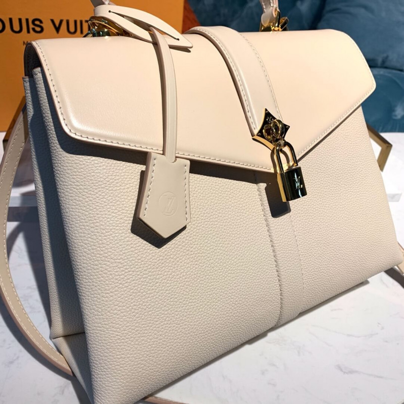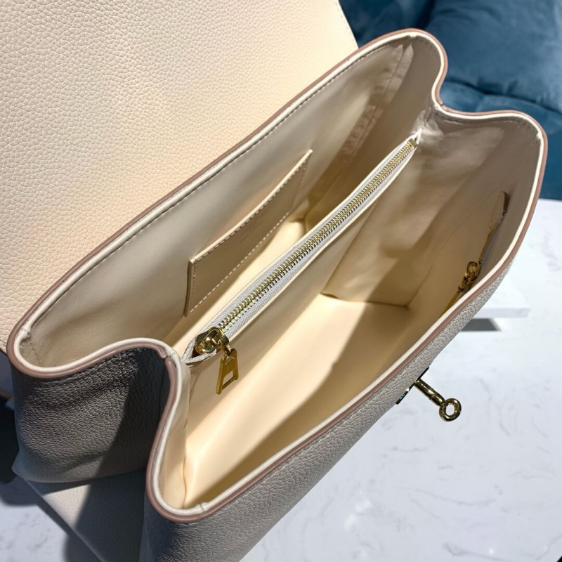 Louis Vuitton brings grained calf leather together with smooth calf leather in the fancy Rose des Vents MM handbag. Signed with a gold-tone LV padlock and a calf leather key bell, there’s a slender top handle for elbow carry and an adjustable strap for cross-body wear. Inside compartments and pockets make it a practical and sophisticated everyday bag.