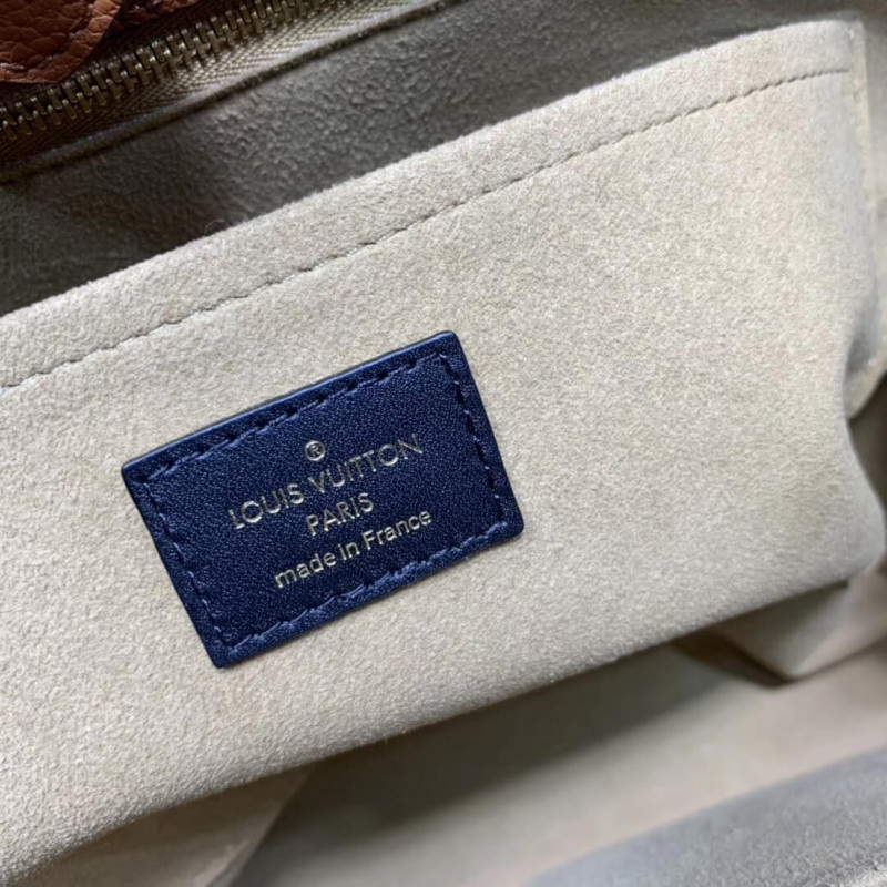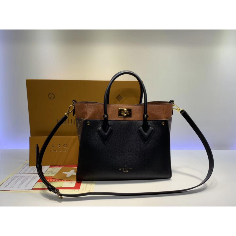 The On My Side tote bag is fashioned from an elegant combination of small-grained calf leather and emblematic Monogram canvas. The large outside pockets in contrasting canvas create a bag-in-a-bag look. The roomy interior can easily hold everything needed for a day at the office while the adjustable strap makes for practical cross-body carry.