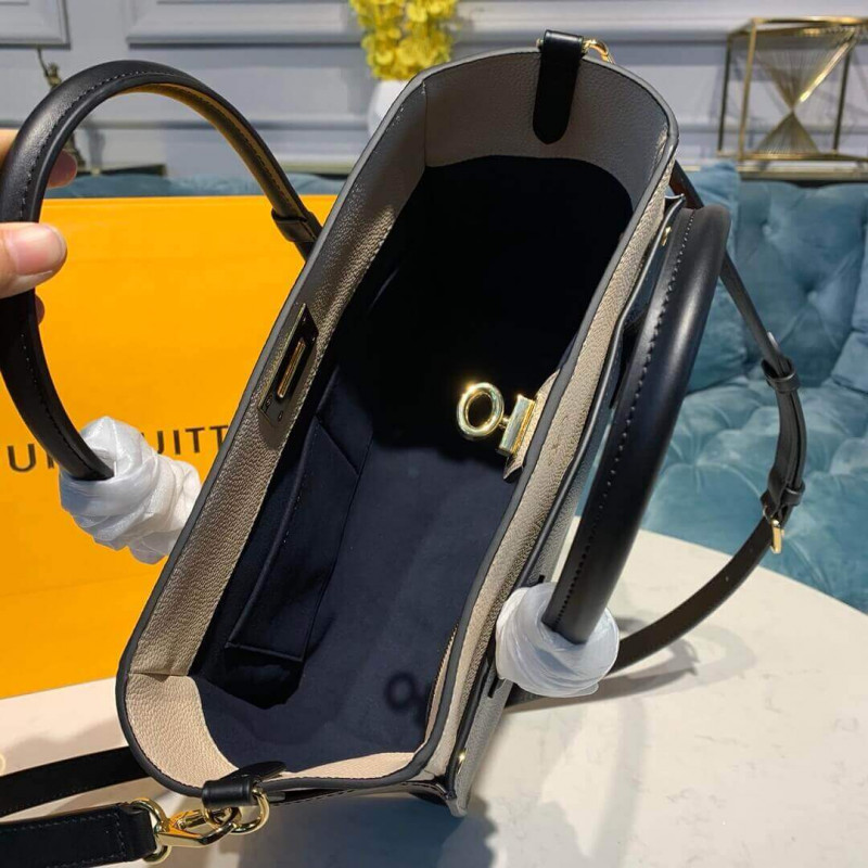 The On My Side tote bag is fashioned from an elegant combination of small-grained calf leather and emblematic Monogram canvas. The large outside pockets in contrasting canvas create a bag-in-a-bag look. The roomy interior can easily hold everything needed for a day at the office while the adjustable strap makes for practical cross-body carry.