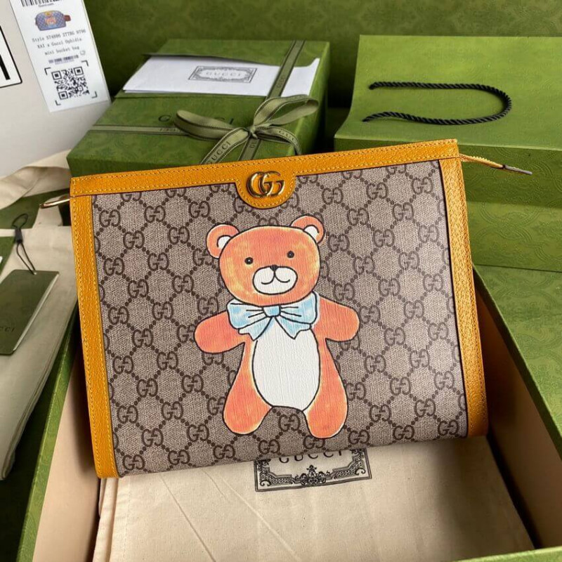 - Beige and ebony GG Supreme canvas with teddy bear print