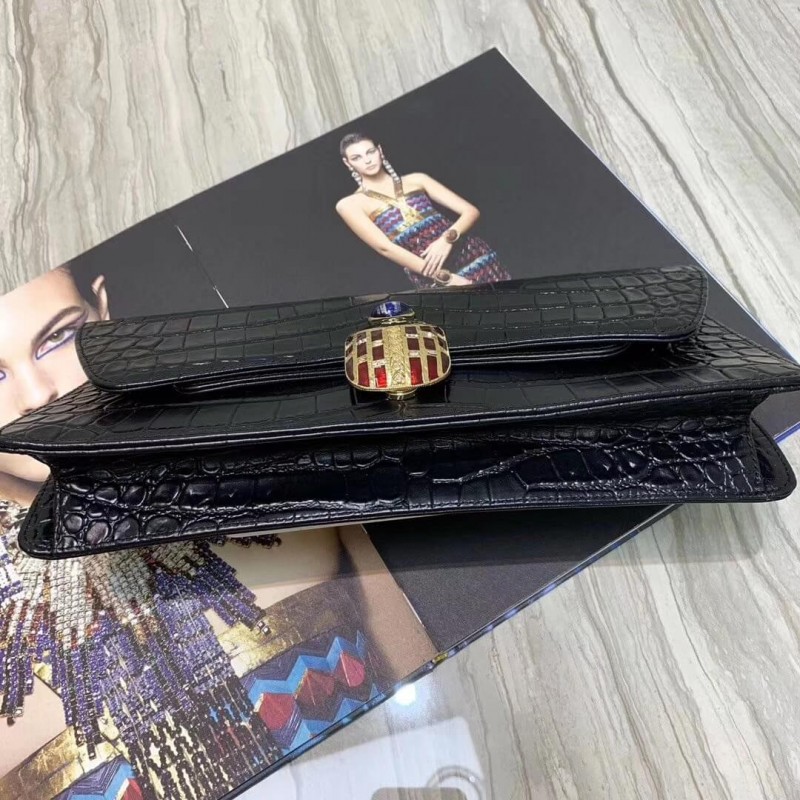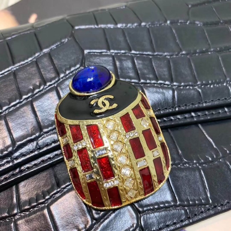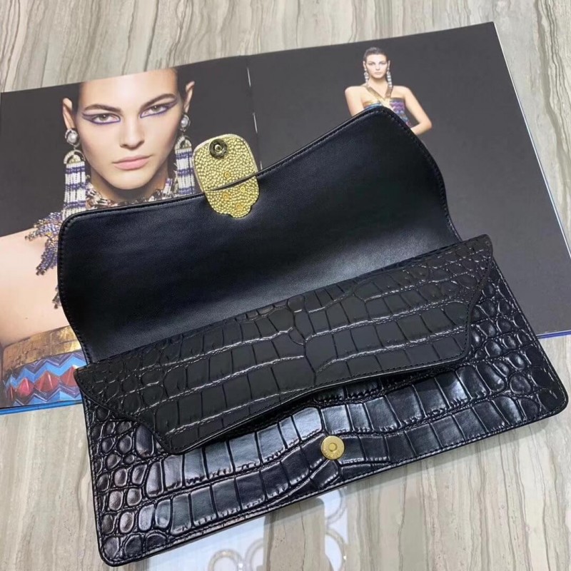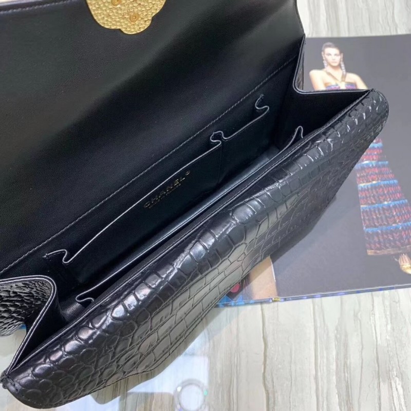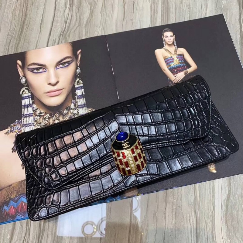 Chanel Metallic Crocodile Embossed Clutch AS0857