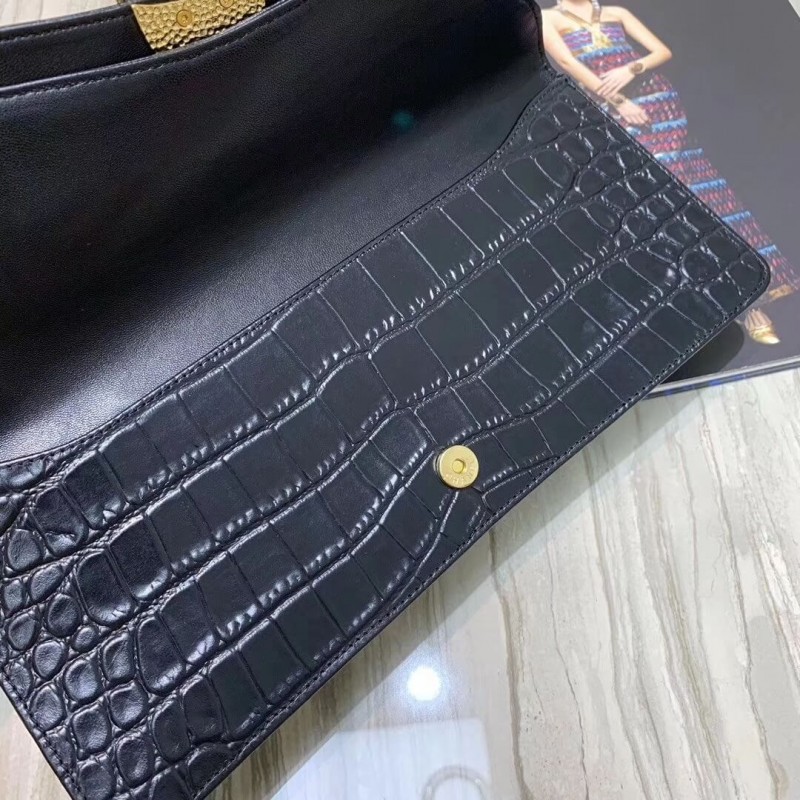- Metallic Crocodile Embossed Calfskin & Gold Metal