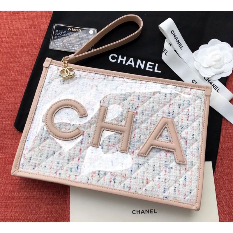 Chanel Large Tweed PVC Logo Pouches AP0360