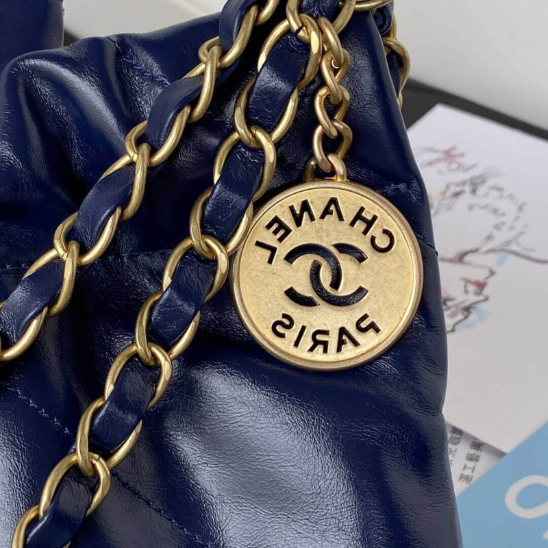 - Blue Metallic Calfskin leather strap with interwoven chain detail