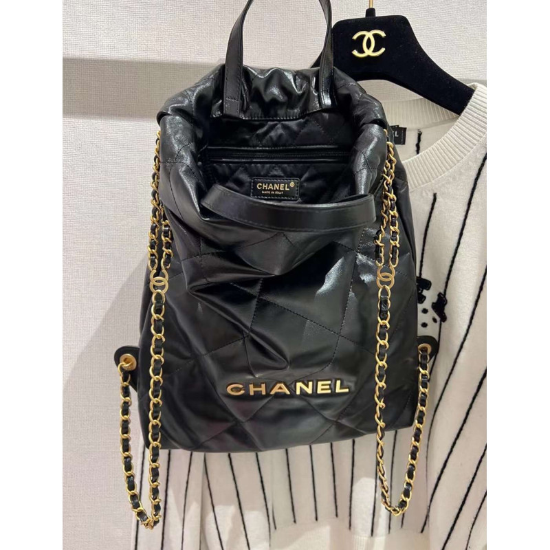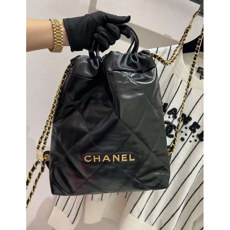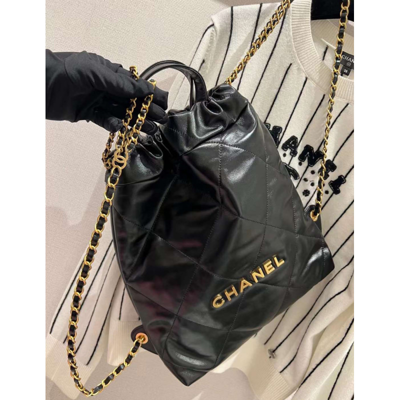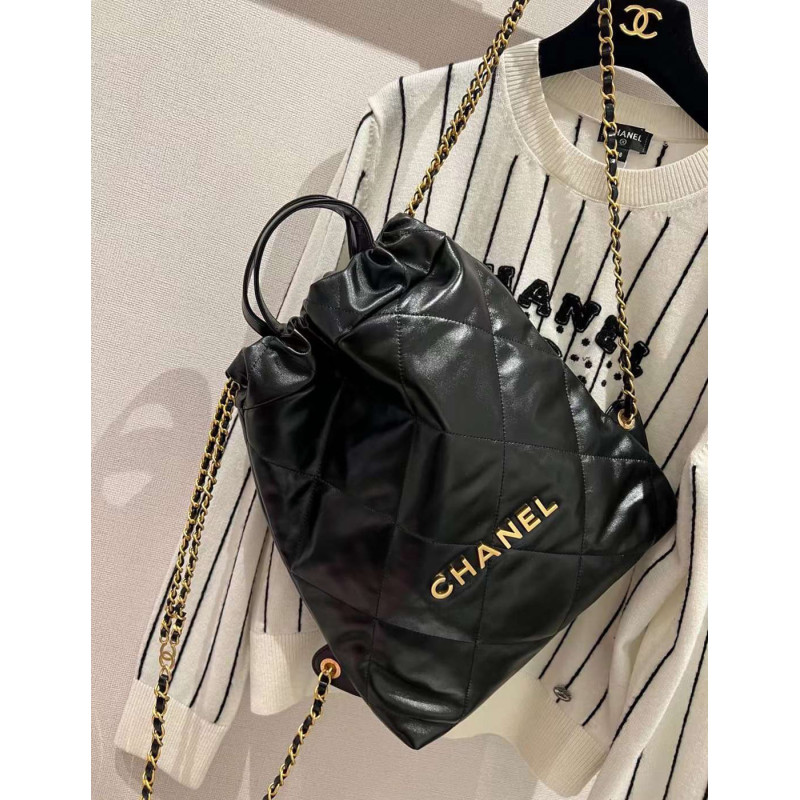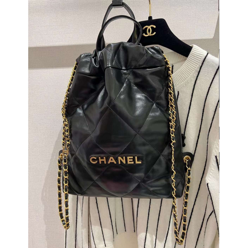 Chanel 22 Backpack in Black Shiny Calfskin AS3859