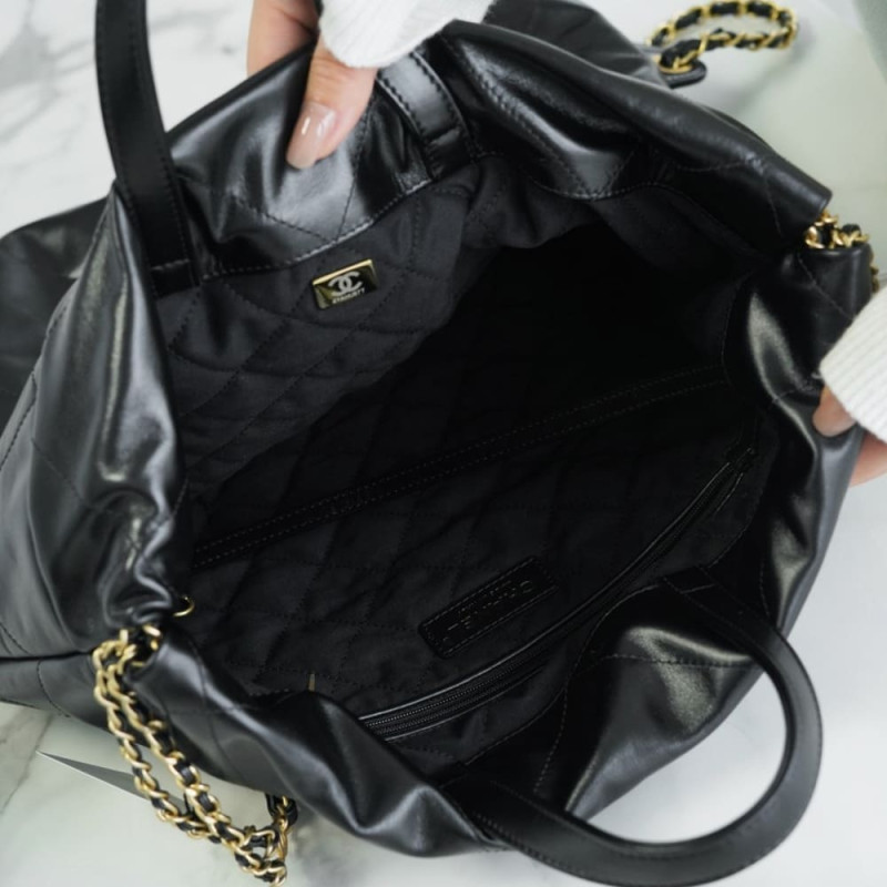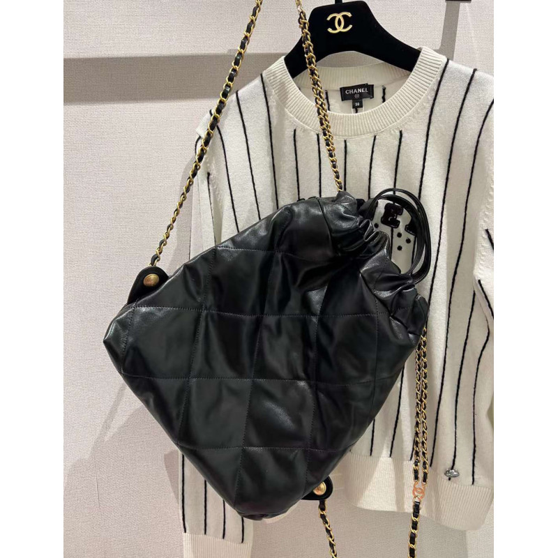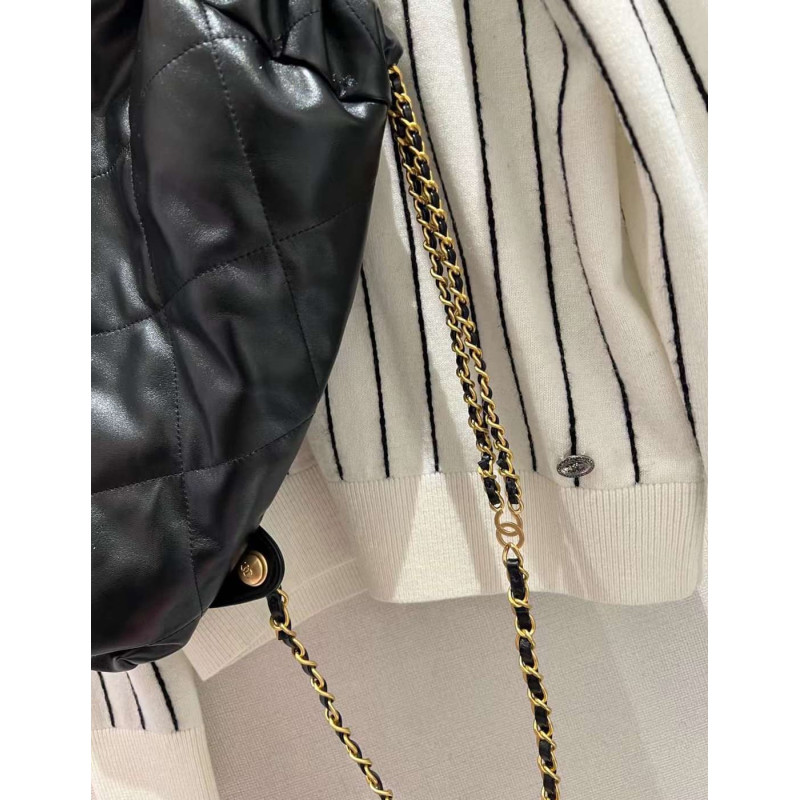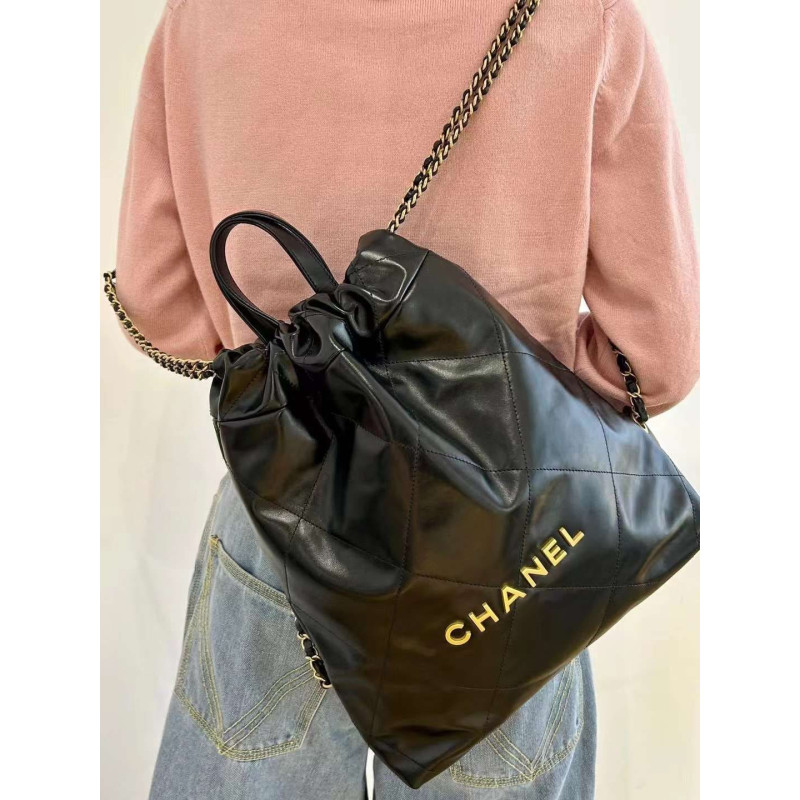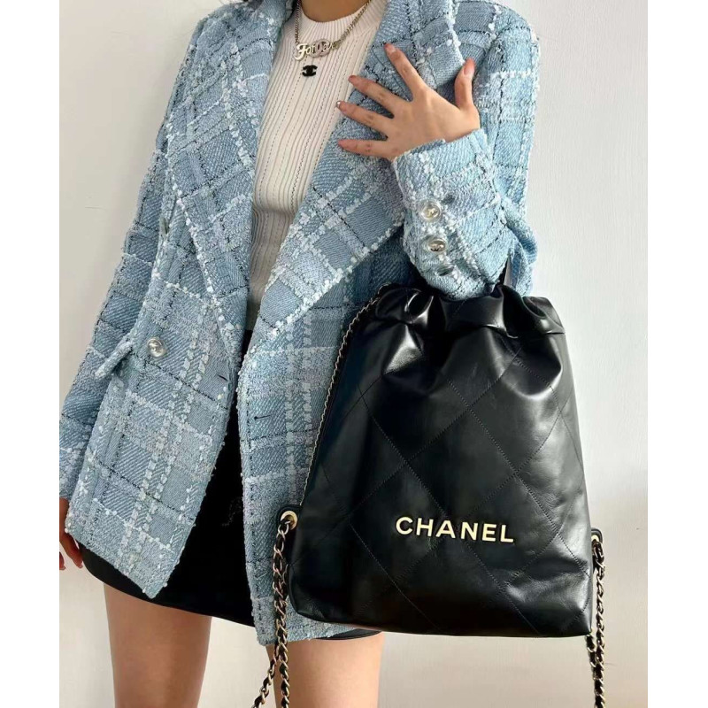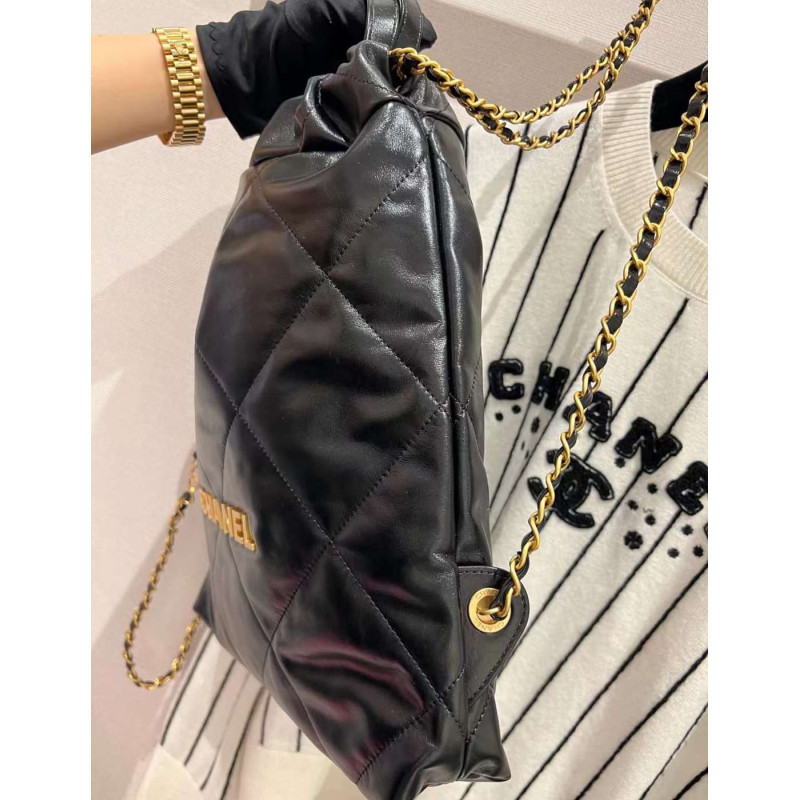 Chanel 22 Backpack in Black Shiny Calfskin AS3859