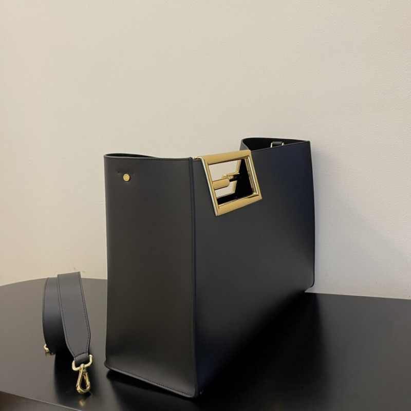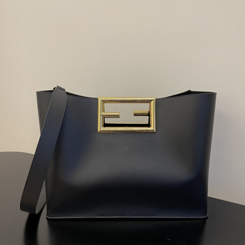 Medium Fendi Way bag made of honey-colored leather, with oversize FF logo metal handles.