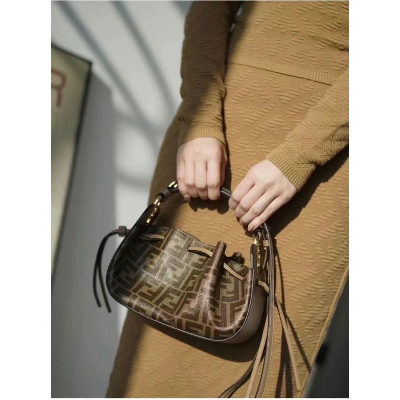 Fendi Pomodorino Brown FF Fabric Mini Bag 8BS059