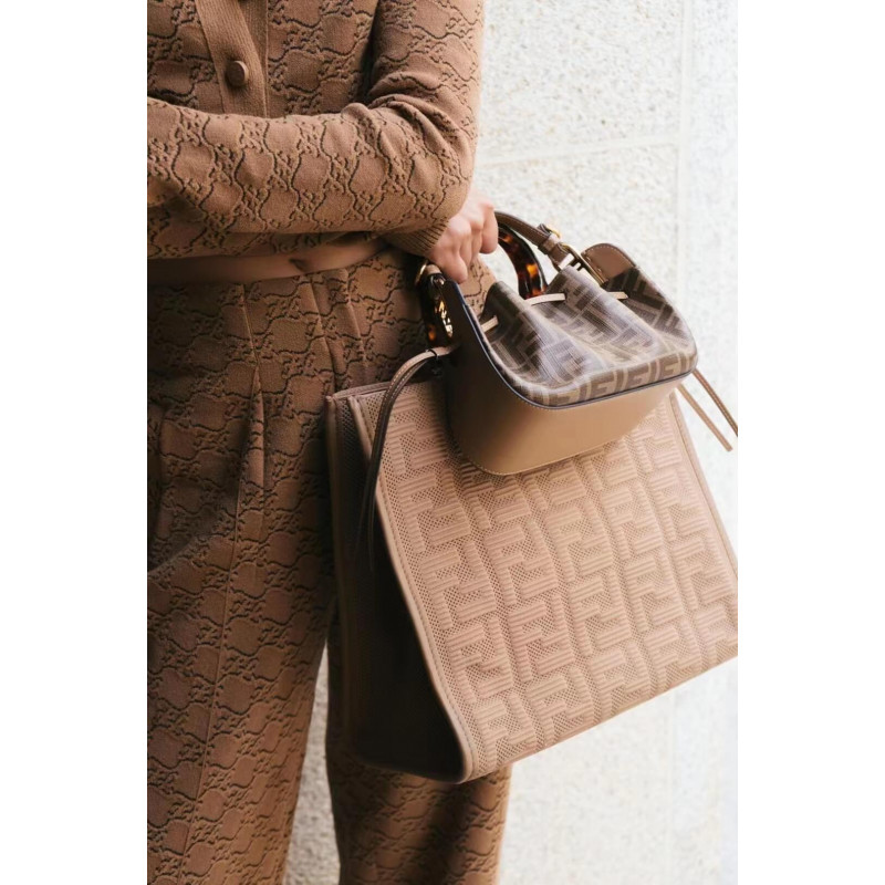 Fendi Medium Sunshine Tote Bag in Apricot FF Fabric 8BH386