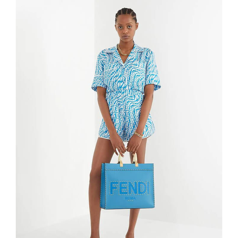 Fendi Sunshine Medium Shopper Woven Raffia Tote 8BH386 Beige