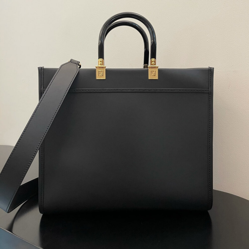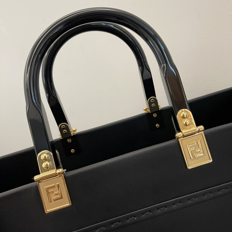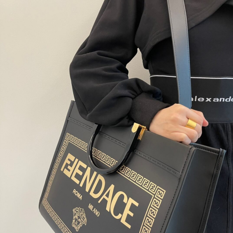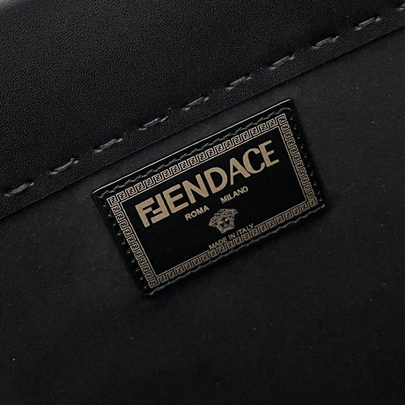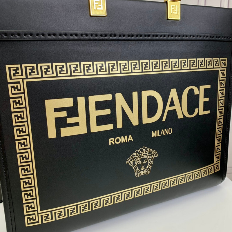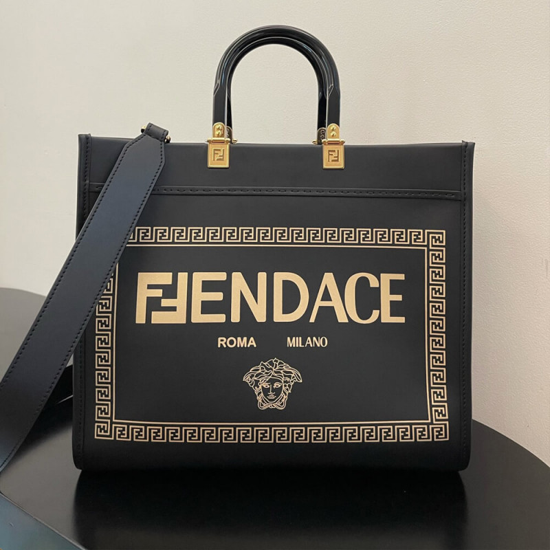 A creative dialogue between Kim Jones and Donatella Versace, the Fendace capsule collection stems from mutual friendship and respect. Made from leather, it features Fendi s signature hinged handles and a Fendace logo at the front. The spacious shopper is complete with a detachable shoulder strap.