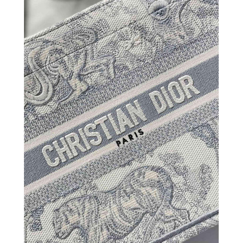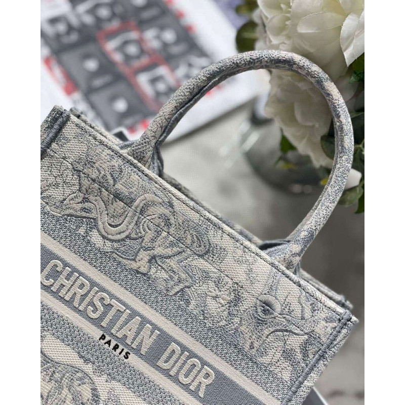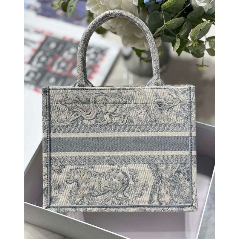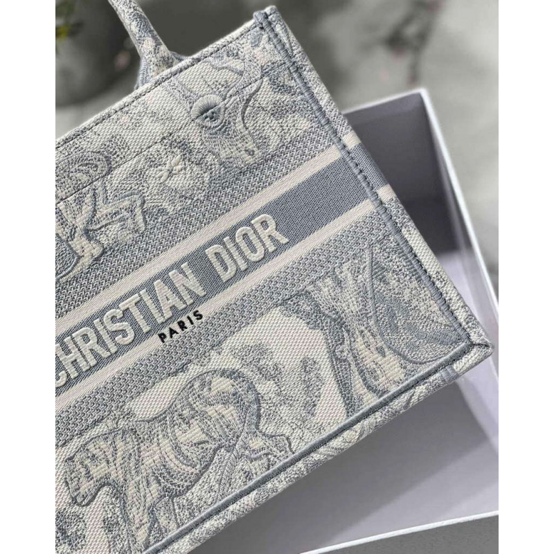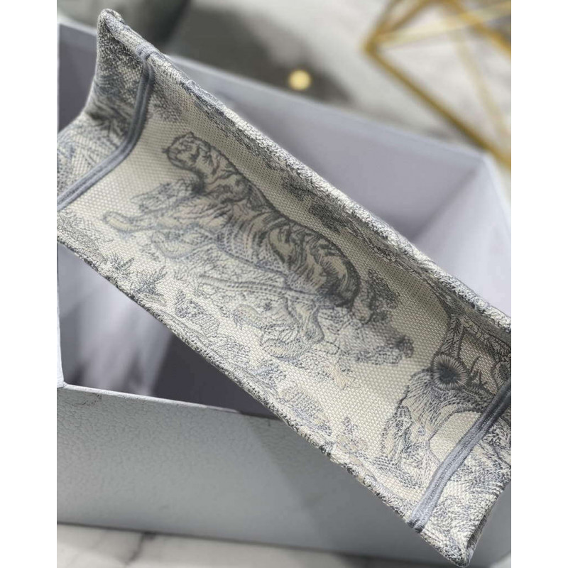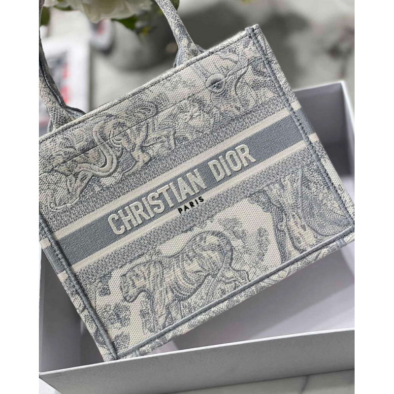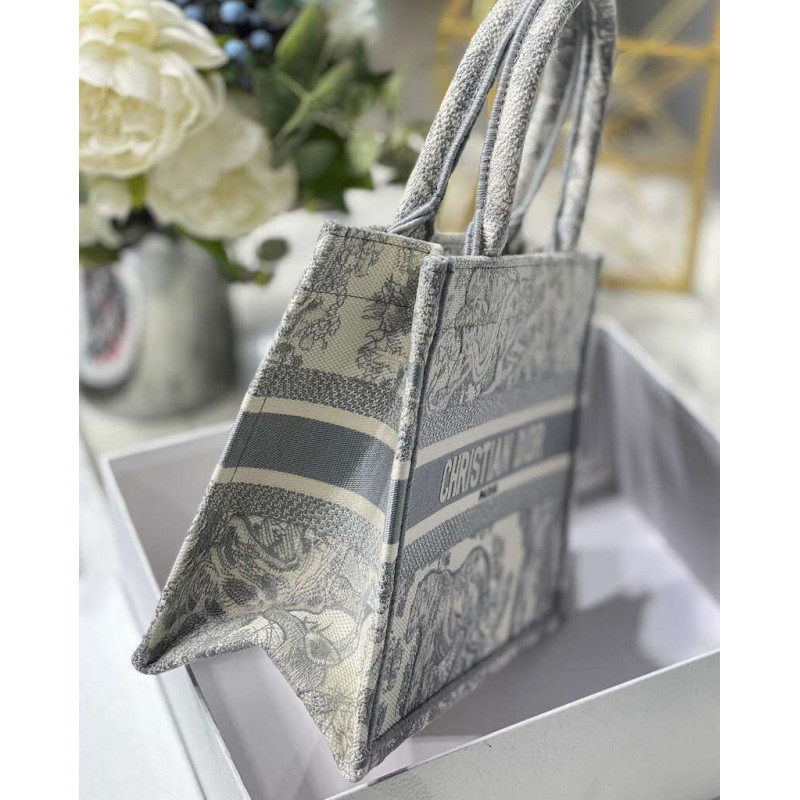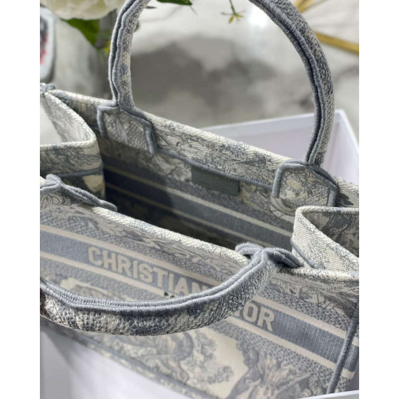 Christian Dior Small Book Tote Bag 26cm Toile De Jouy Reverse Embroidery Grey