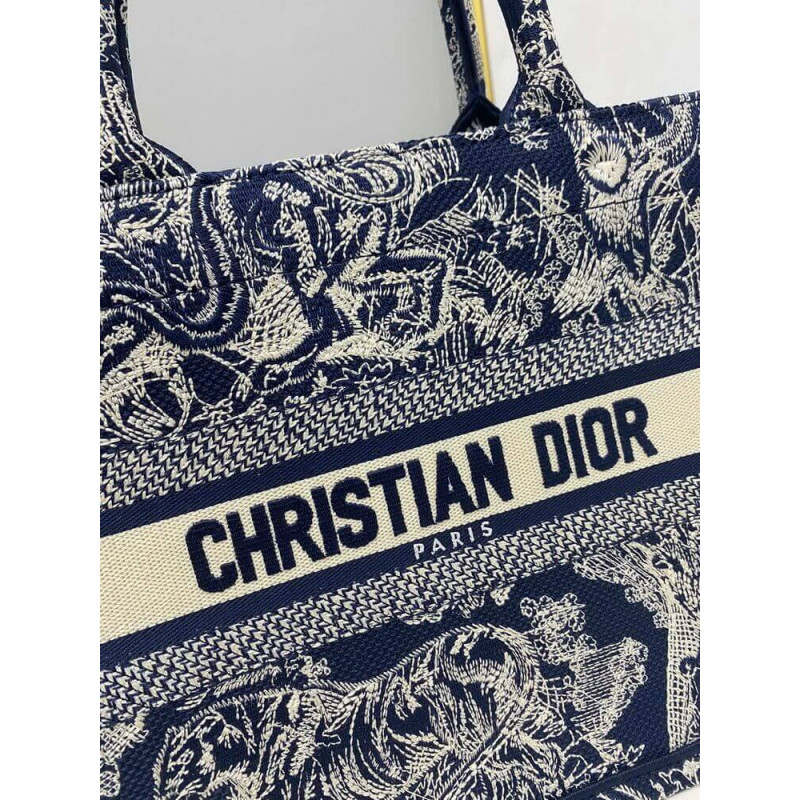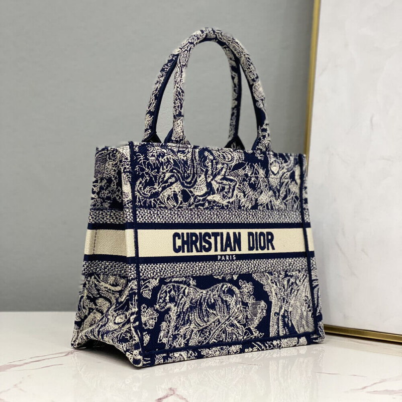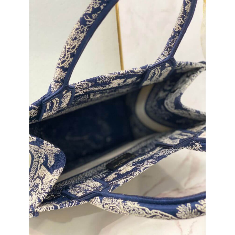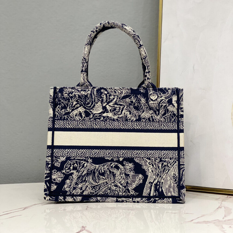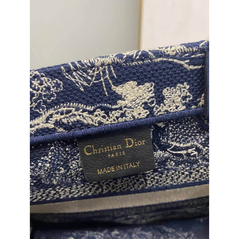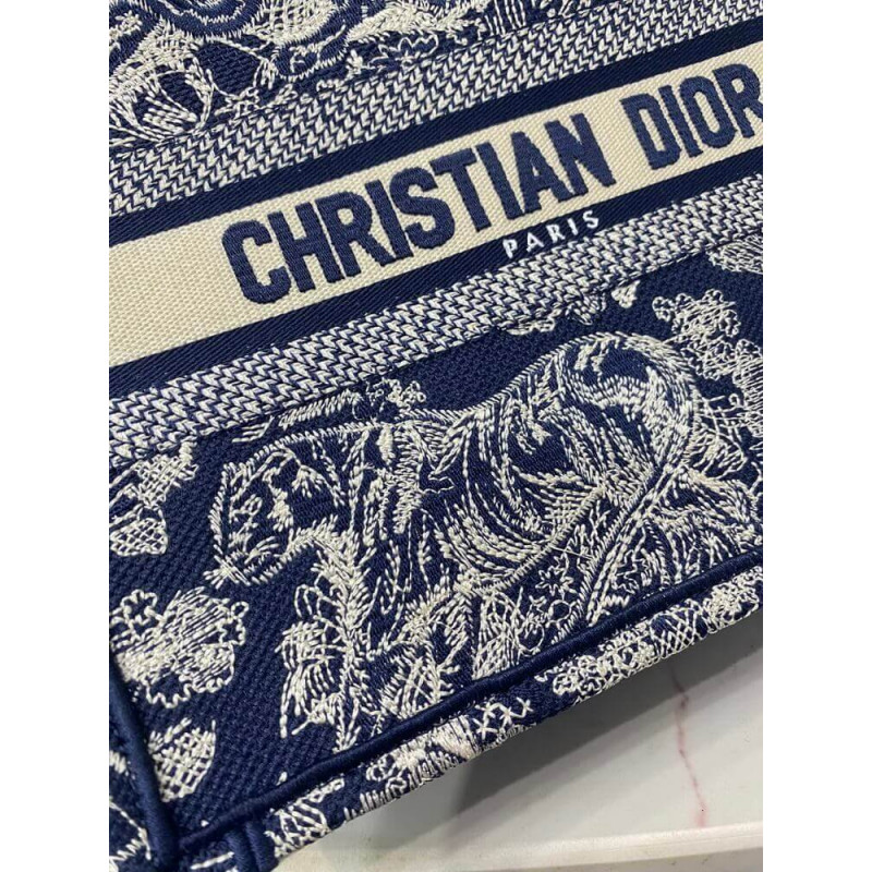 Christian Dior Small Book Tote Bag 26cm Oblique Embroidery Blue