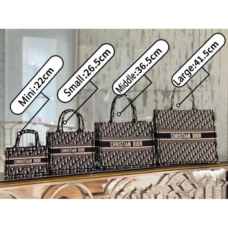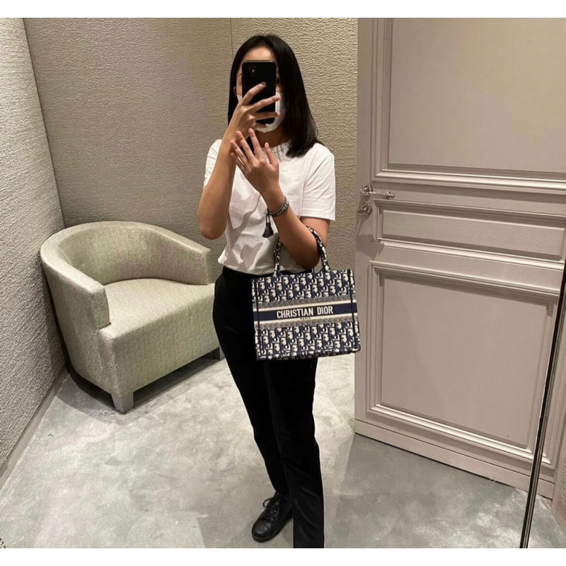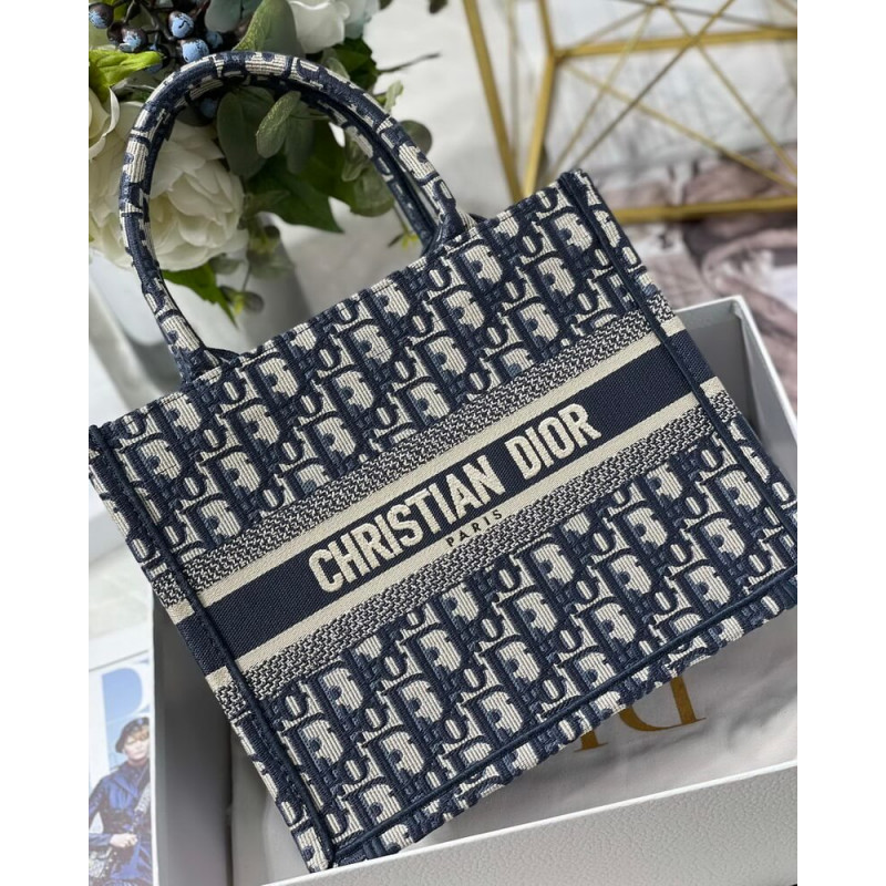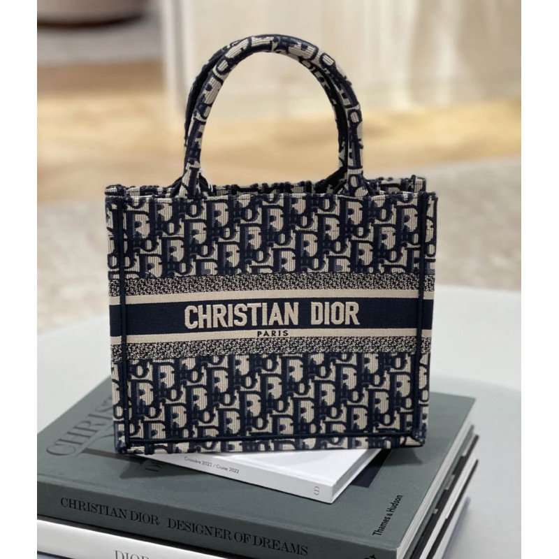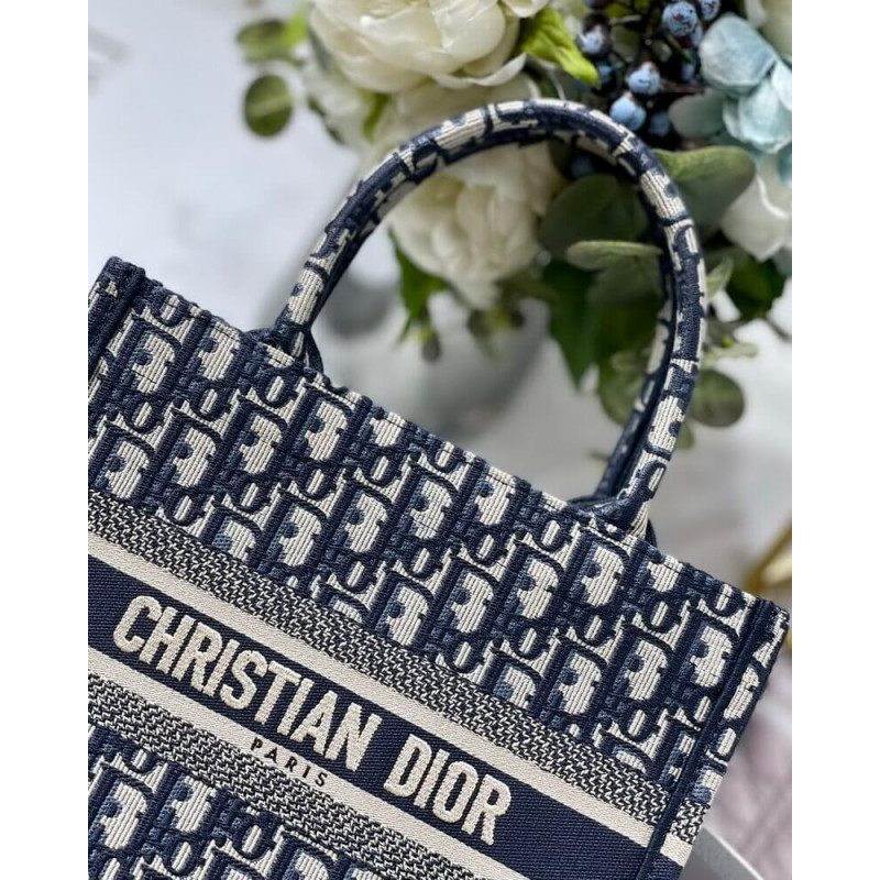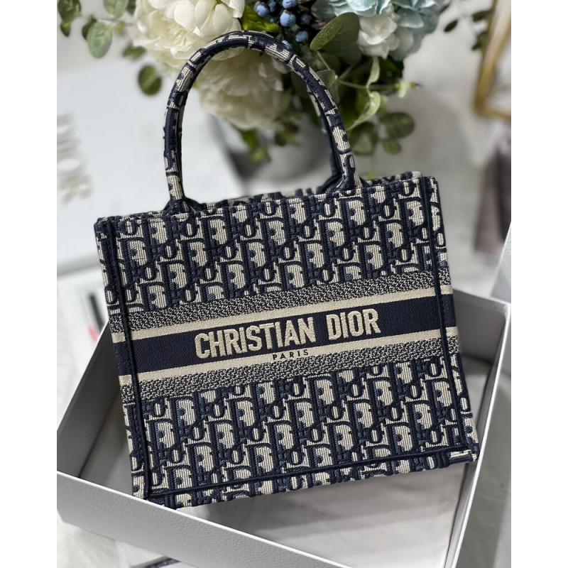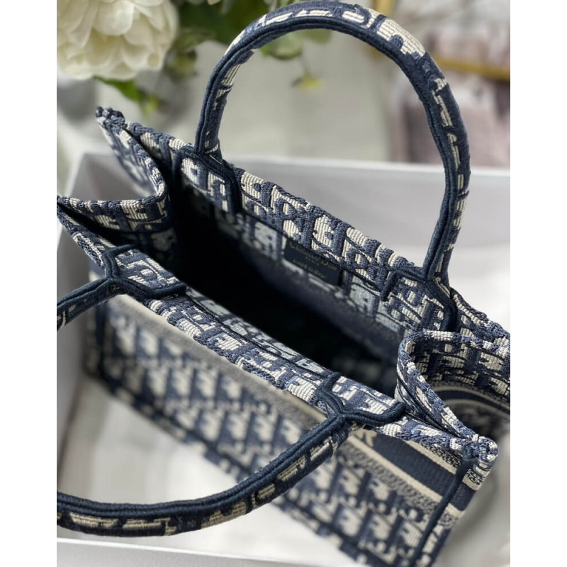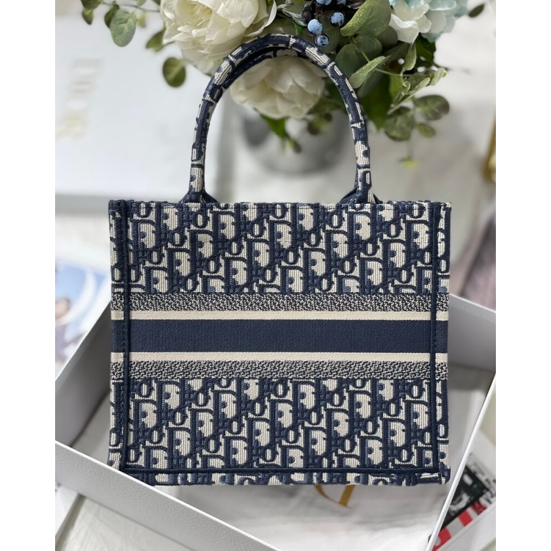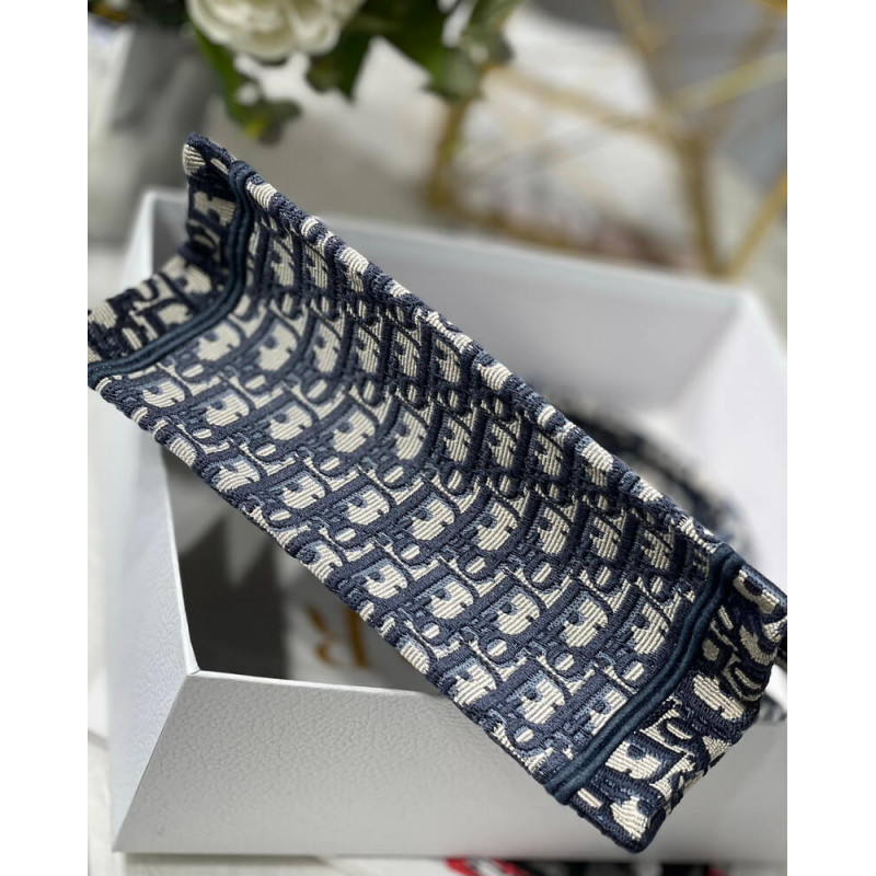 Christian Dior Small Book Tote Bag 26cm Oblique Embroidery Blue