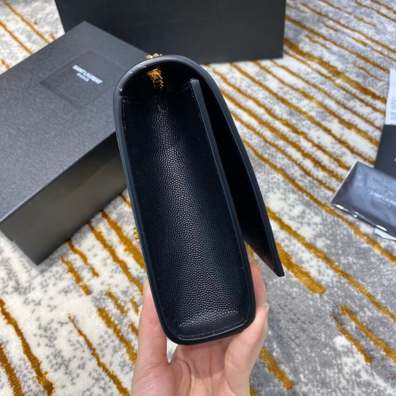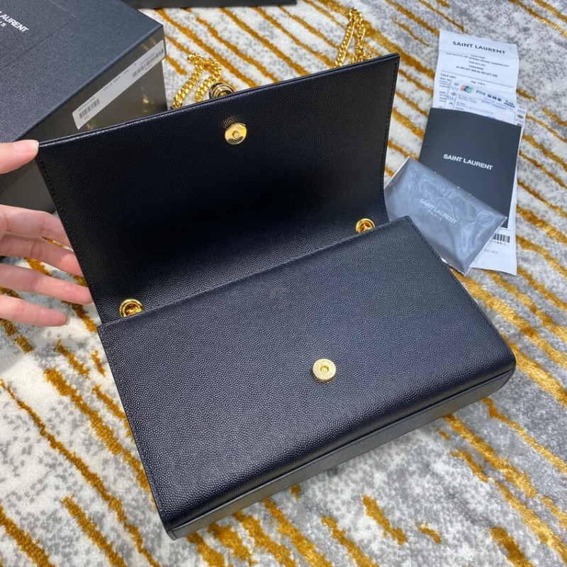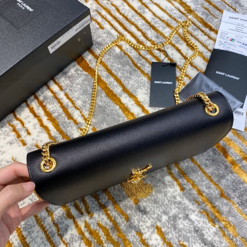 Classic Monogram Saint Laurent Shoulder Bag With Interlocking Metal Ysl Signature And Metal Chain Tassel.