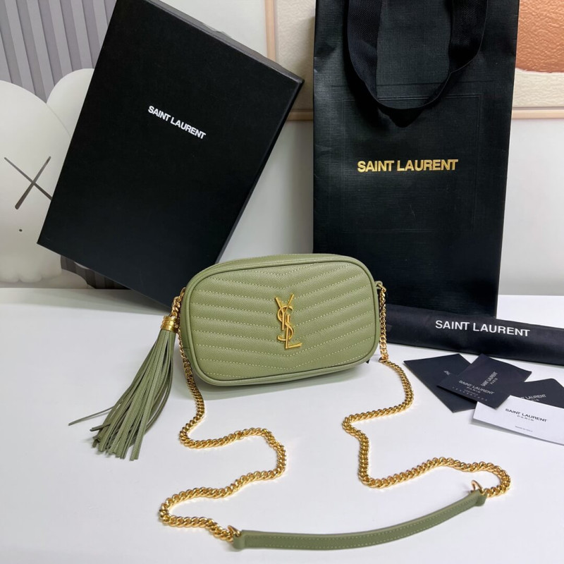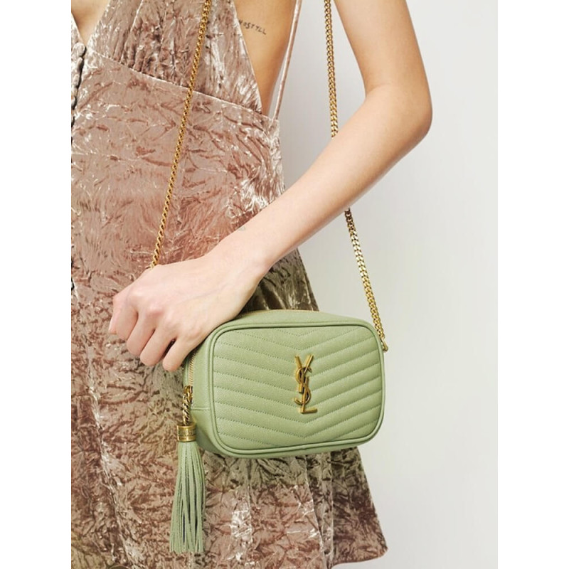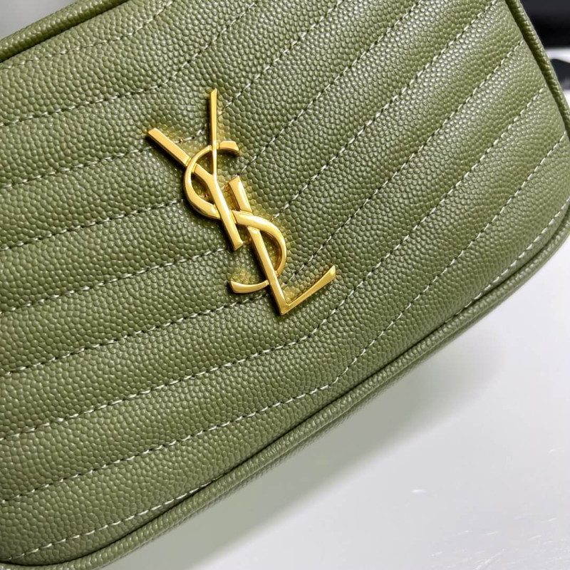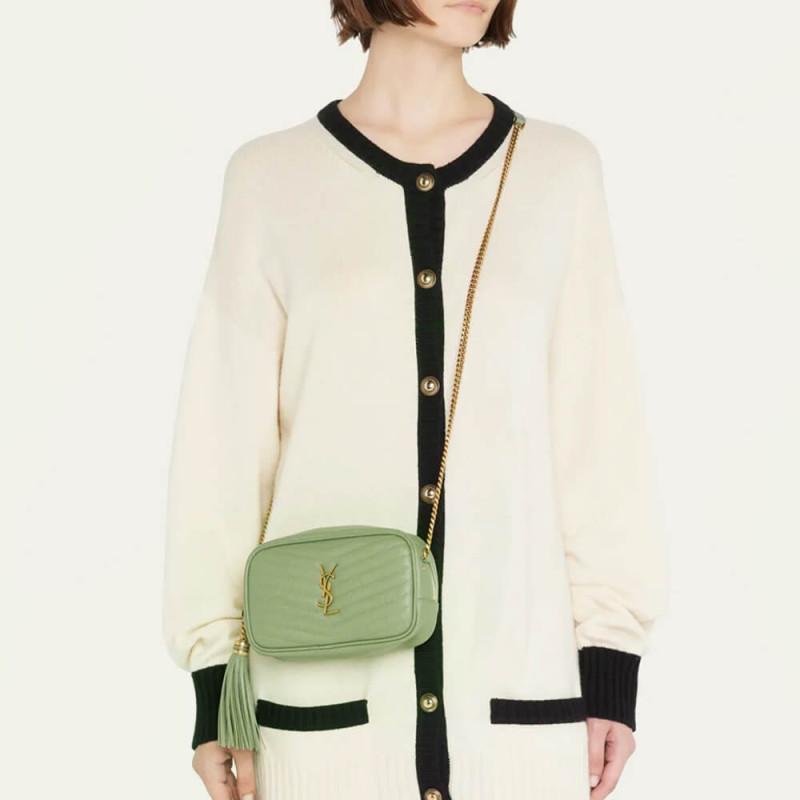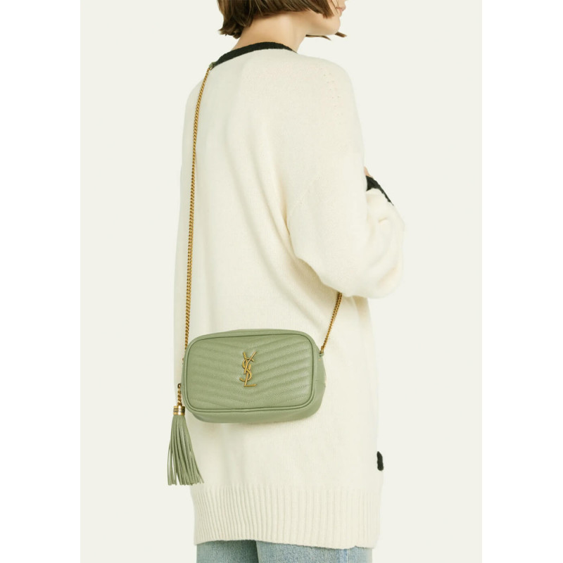 - Saint Laurent "Lou" camera bag in chevron-quilted calf leather with metal YSL monogram on front