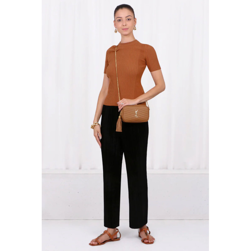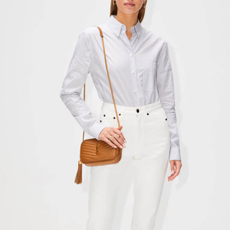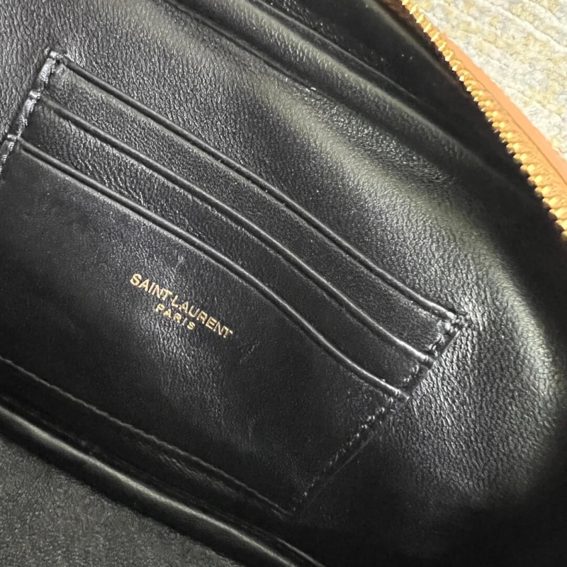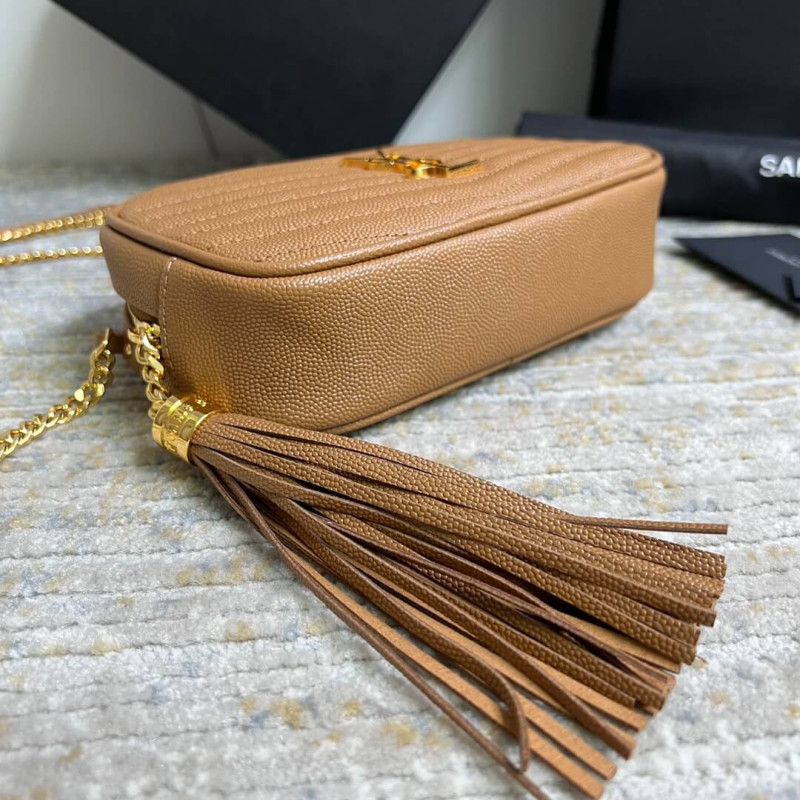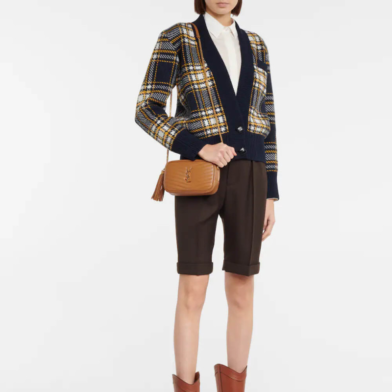 - Saint Laurent "Lou" camera bag in chevron-quilted calf leather with metal YSL monogram on front