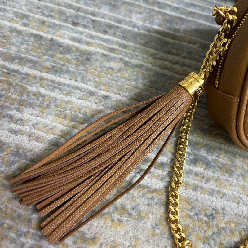 - Leather/chain shoulder strap with tassel charm, 57cm drop