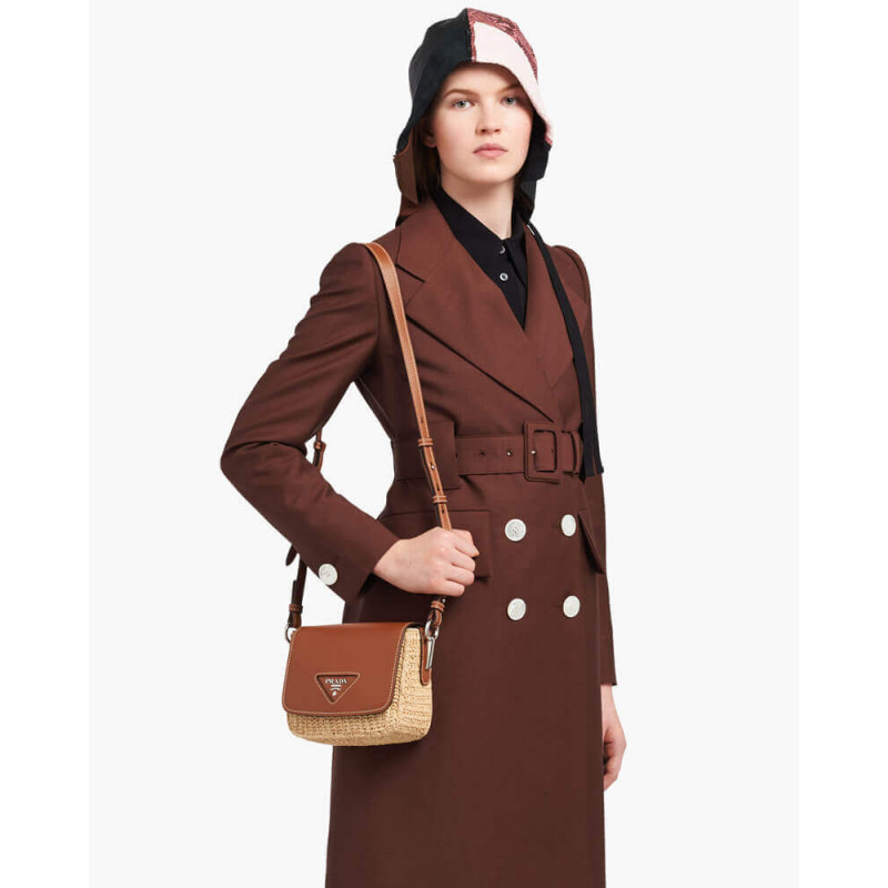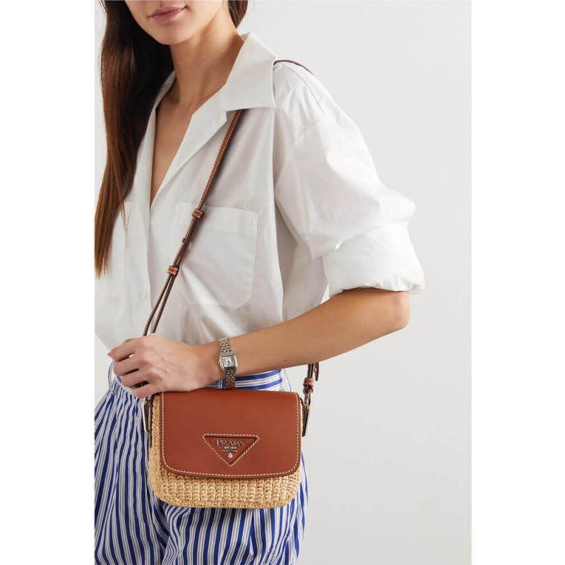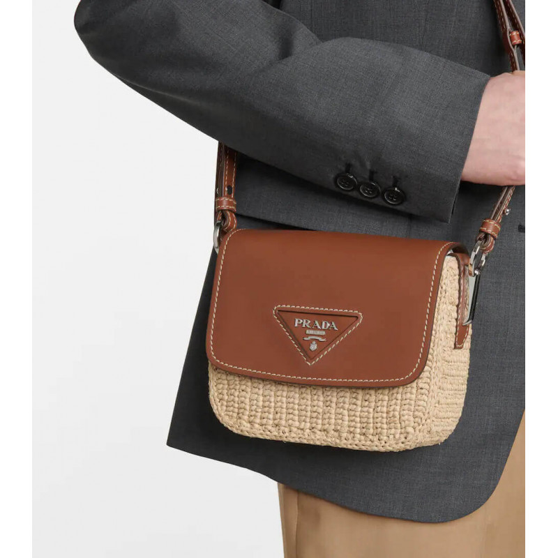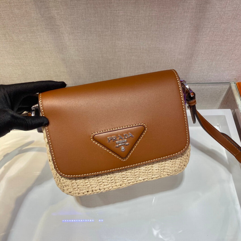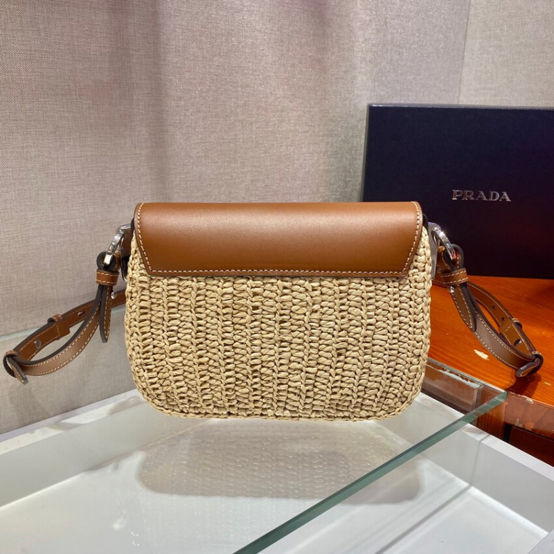 Prada Raffia and Leather Shoulder Bag 1BD243