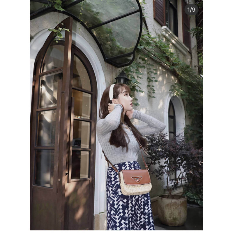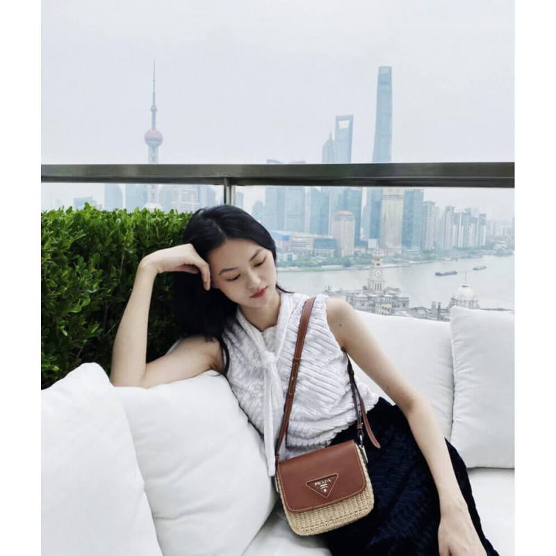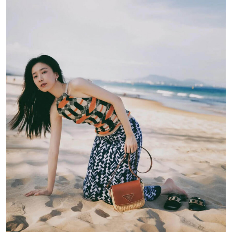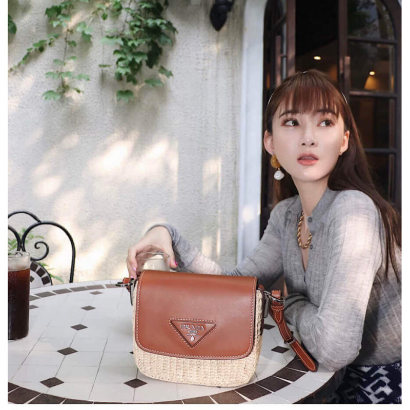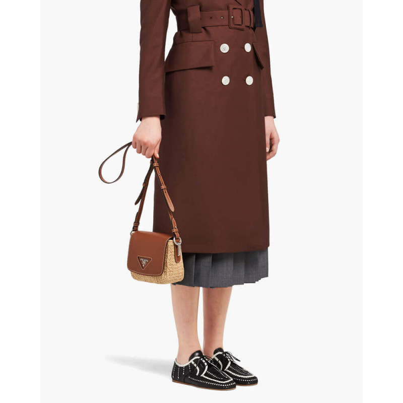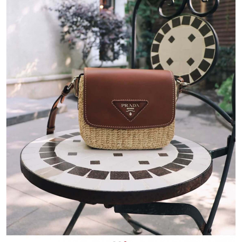 Prada Raffia and Leather Shoulder Bag 1BD243