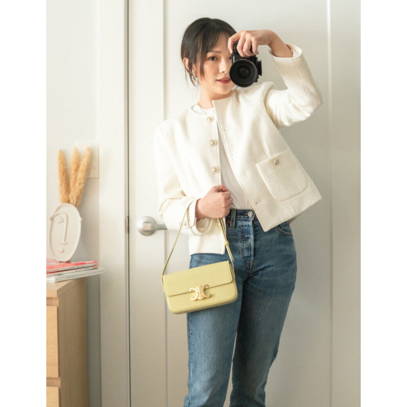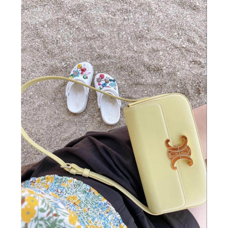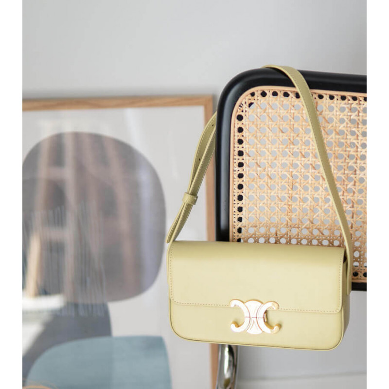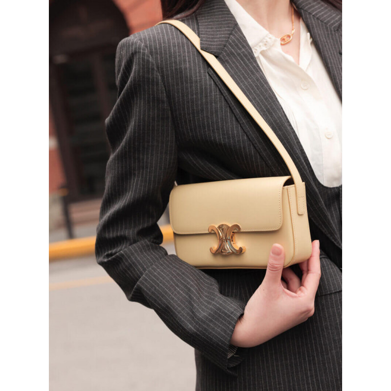 Celine Triomphe Shoulder Bag In Shiny Calfskin 194143 Papyrus