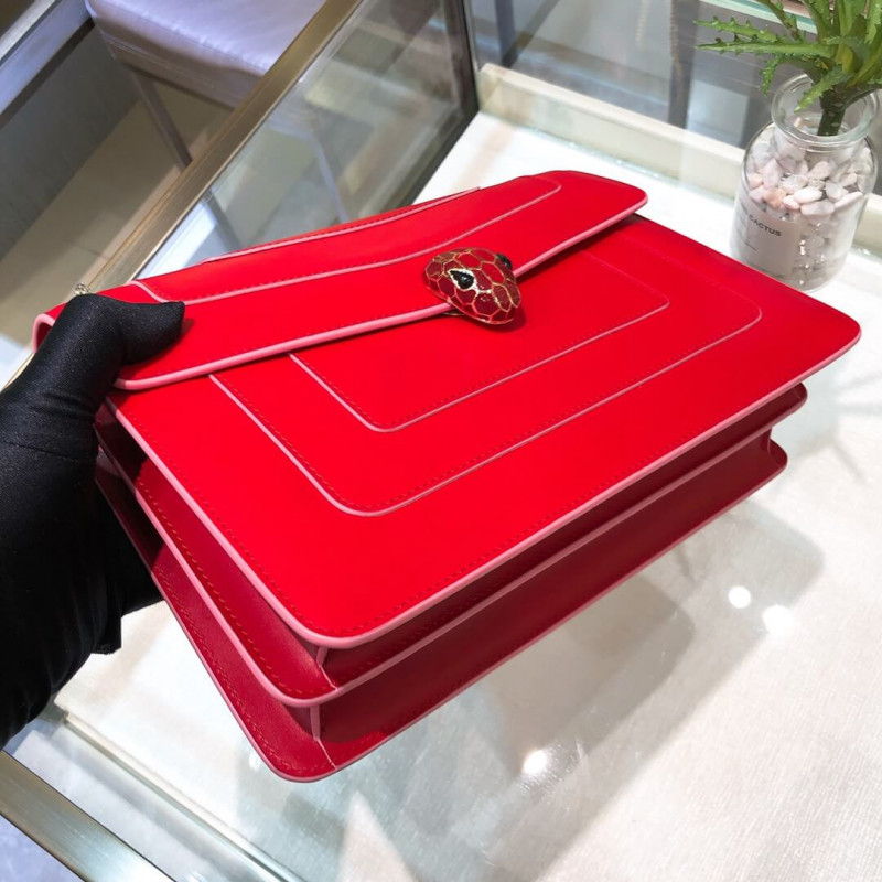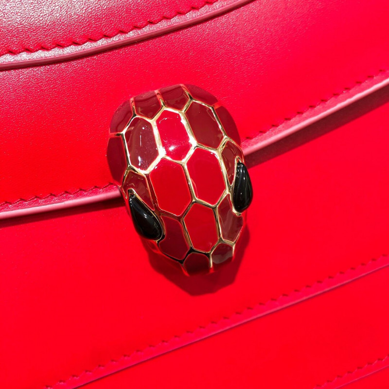 Crafted in smooth candy quartz and rhapsody opal calf leather, the "Serpenti Forever" crossbody bag is reinterpeted with a pop twist for the Winter Holidays season.