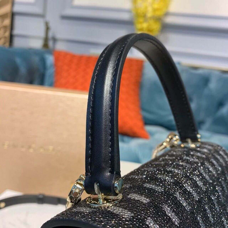 Bvlgari Serpenti Forever Crossbody Top Handle Bag 18cm in Charcoal Diamond Crystal Galuchat Skin 284537