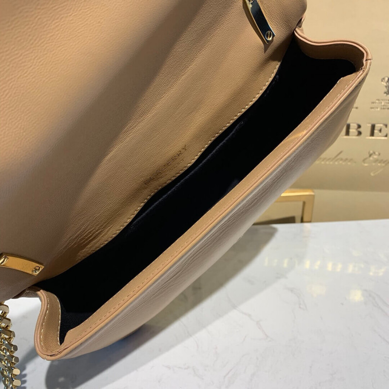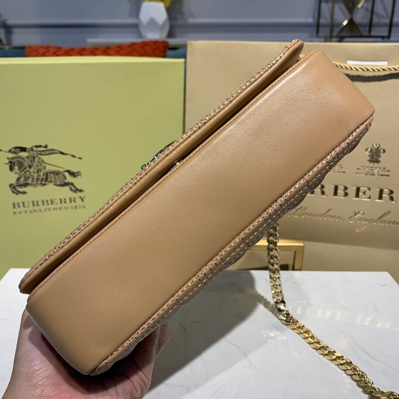 A softly structured, quilted runway bag crafted from Italian-tanned lambskin. The style is punctuated with a polished chain strap and the Thomas Burberry Monogram. Wear it on the shoulder or style as a crossbody.