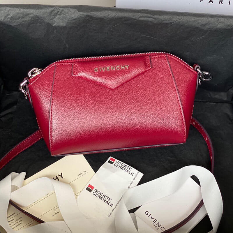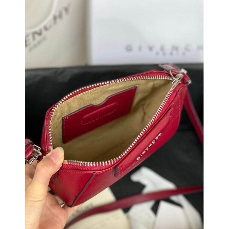 Givenchy s coveted Antigona satchel is scaled down to miniature proportions and equipped with an elongated strap for styling versatility, all finished with sleek logo detail and silvertone hardware.