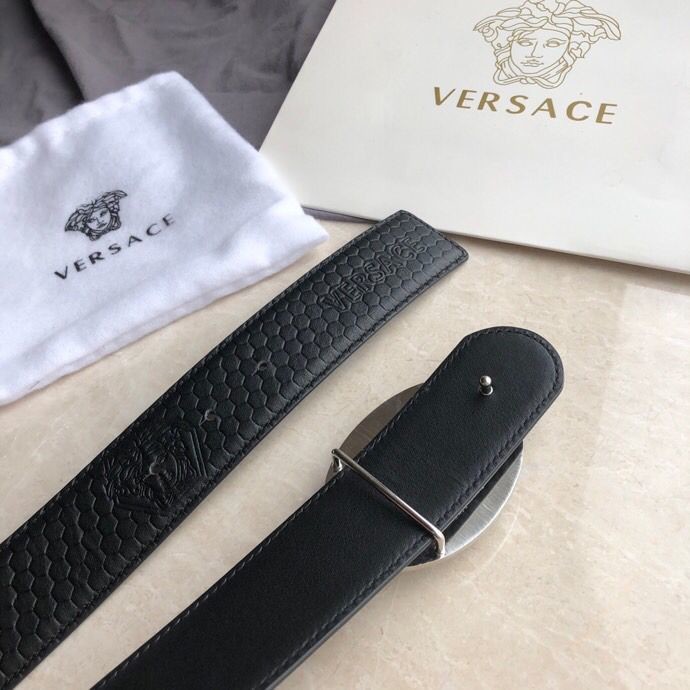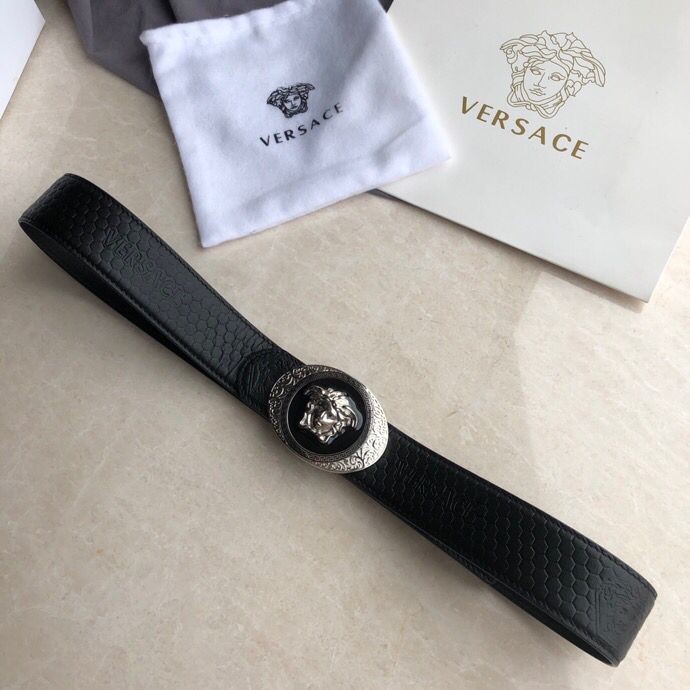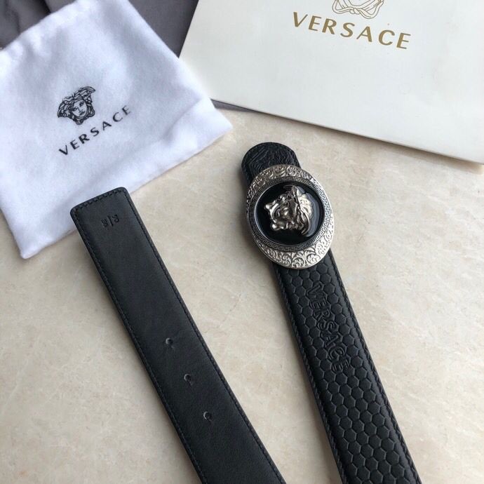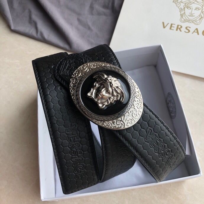 Versace Men s Black Cowhide Medusa Logo Belt 3.8cm