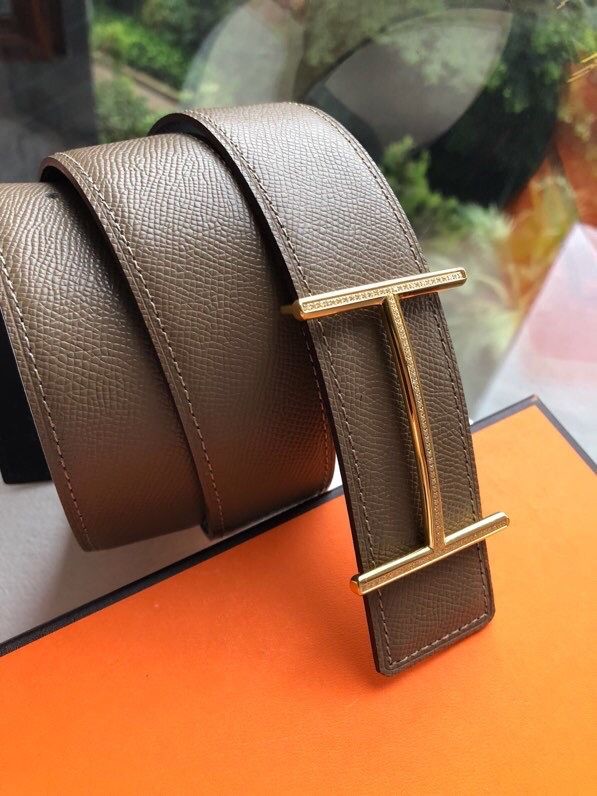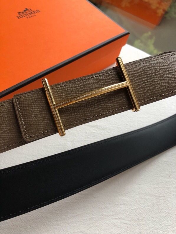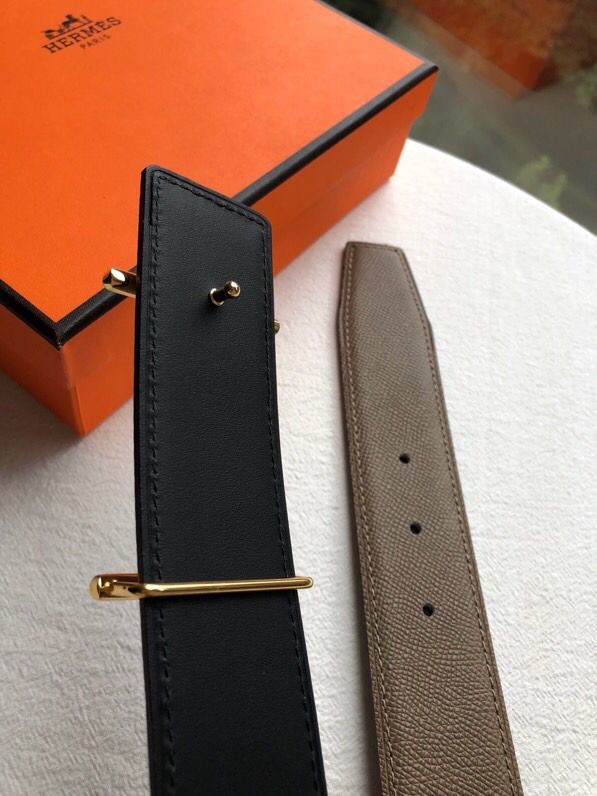 Hermes Stainless steel metal diamond buckle leather men s 3.8cm belt