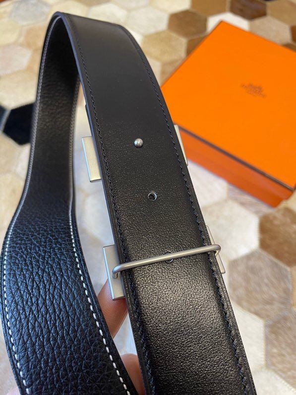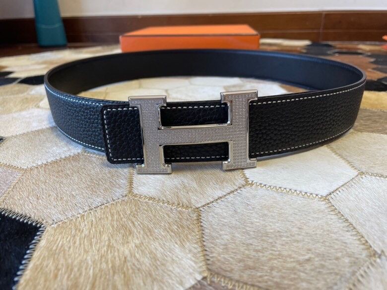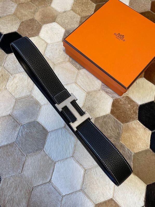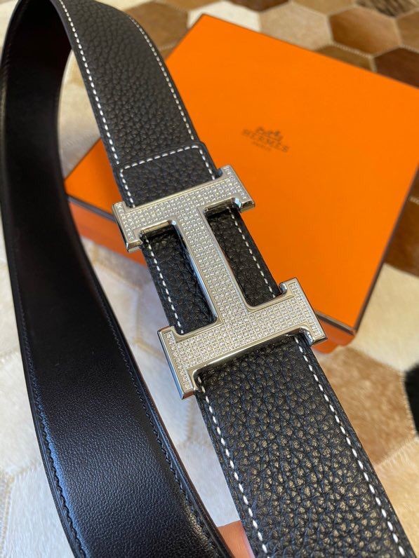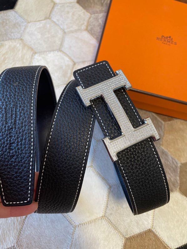 Hermes Stainless Steel Full Rhinestone Reversible Leather Men s 3.8cm Belt