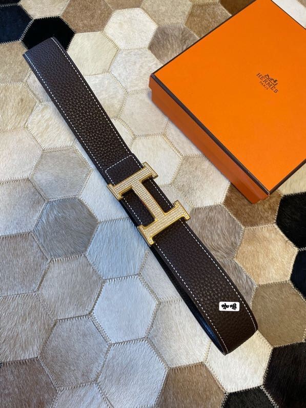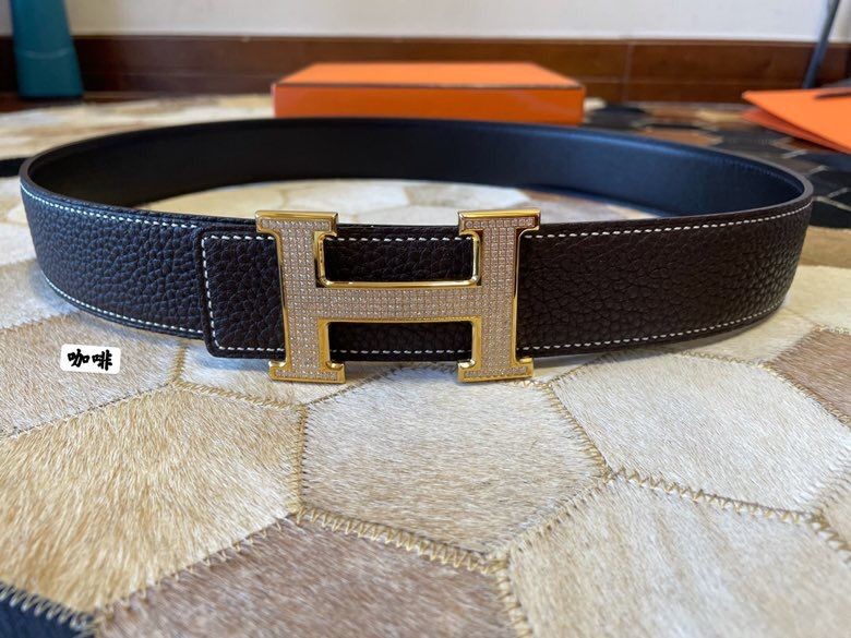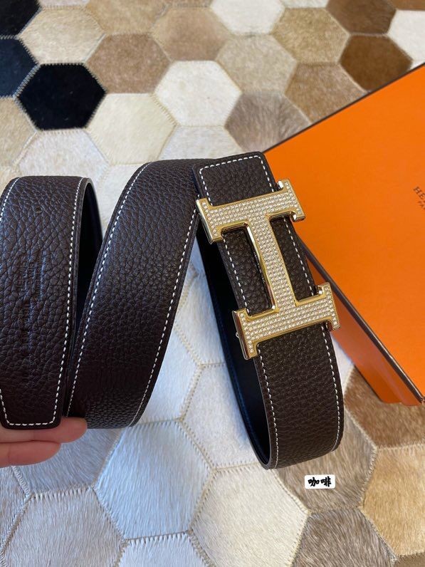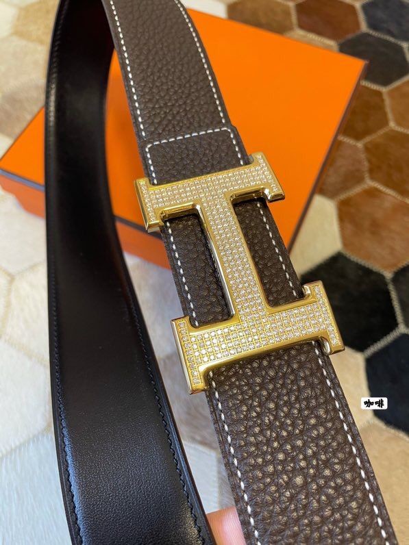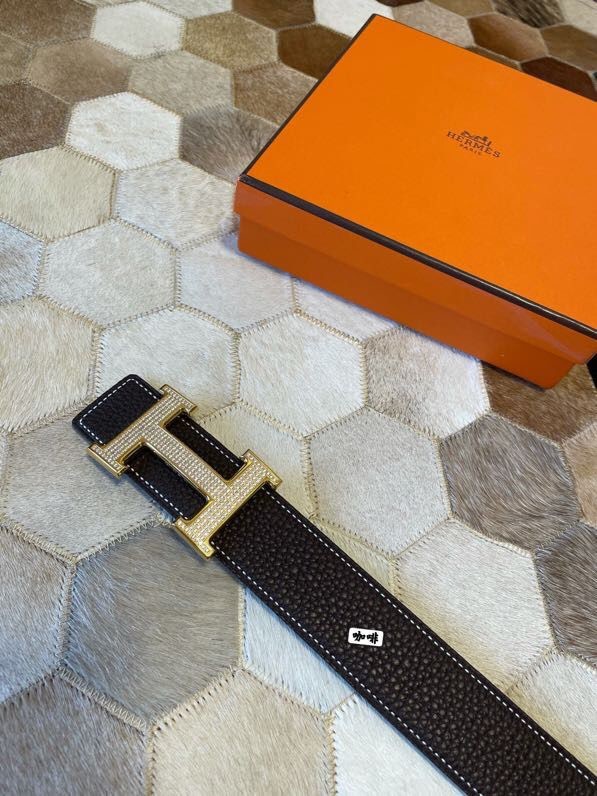 Hermes Stainless Steel Full Rhinestone Reversible Leather Men s 3.8cm Belt