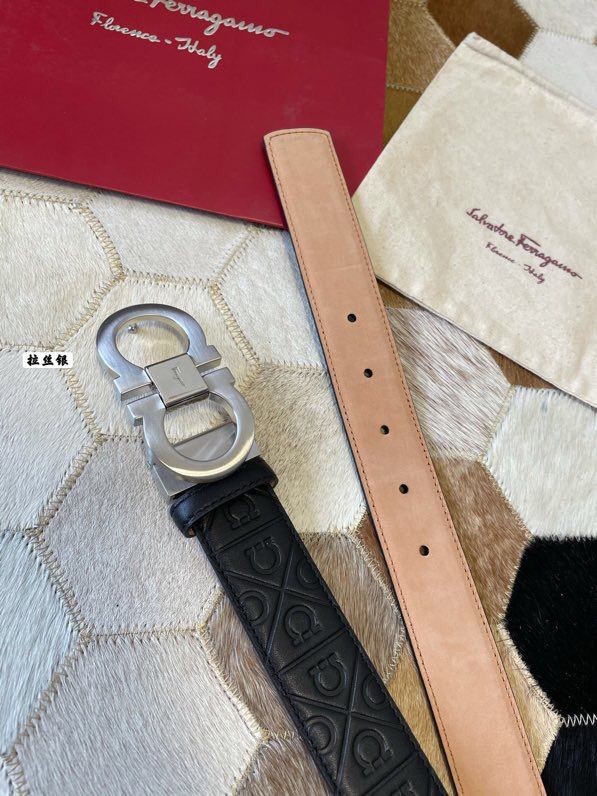 Ferragamo Men s 3.5cm exquisite horseshoe metal buckle men s belt