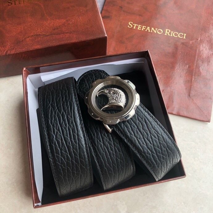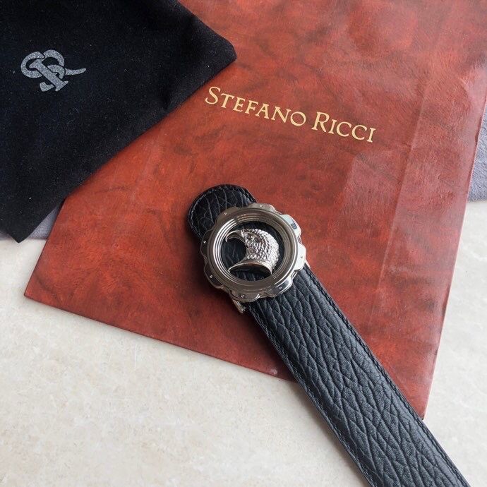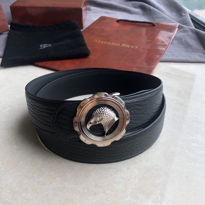 Stefano Ricci Stainless steel eagle head metal buckle 3.8cm cowhide belt
