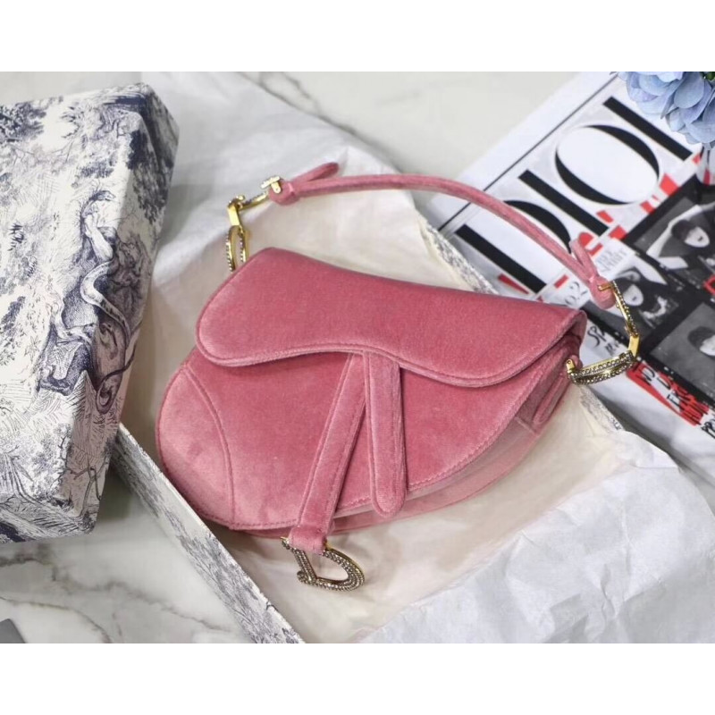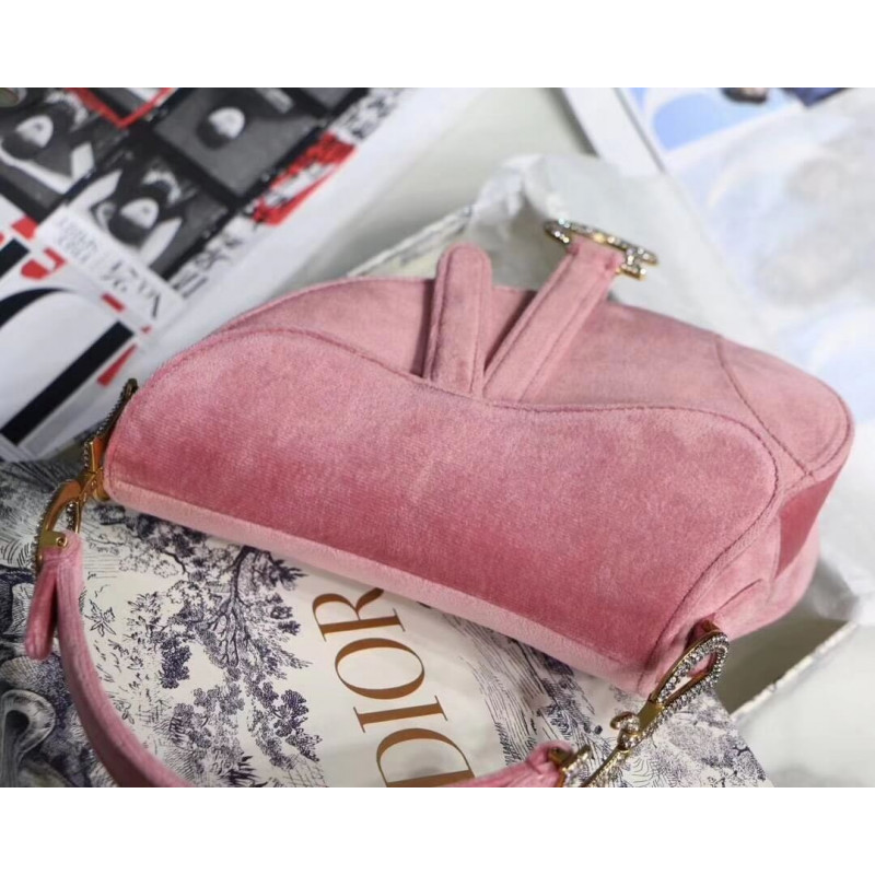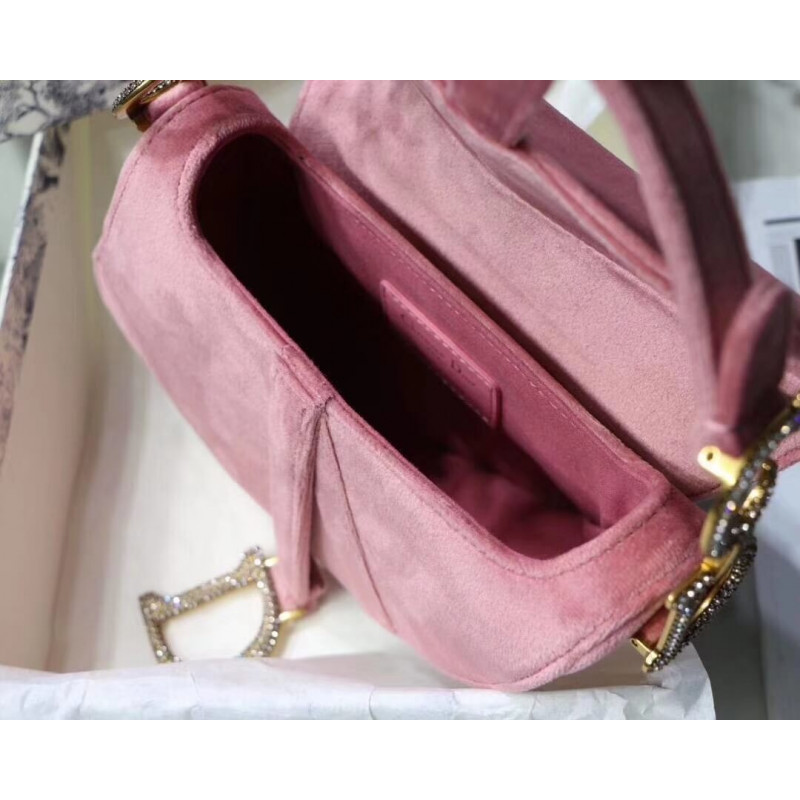 Christian Dior Saddle 20cm Shoulder Bag with Crystals Velvet M8044