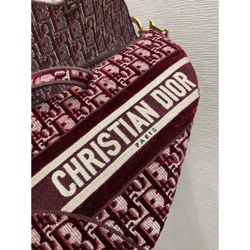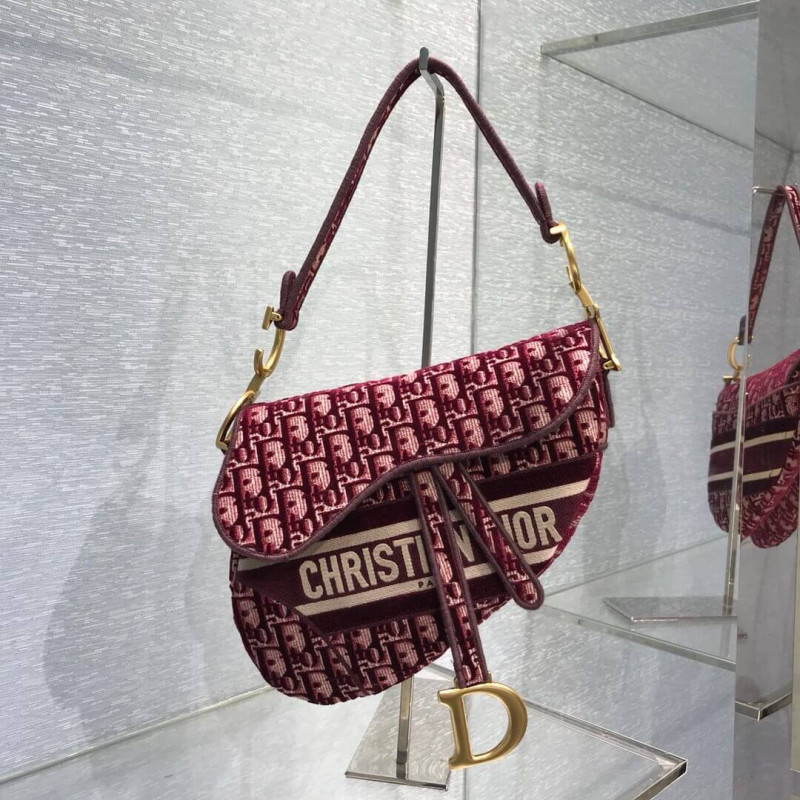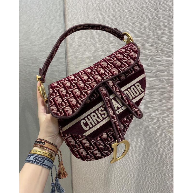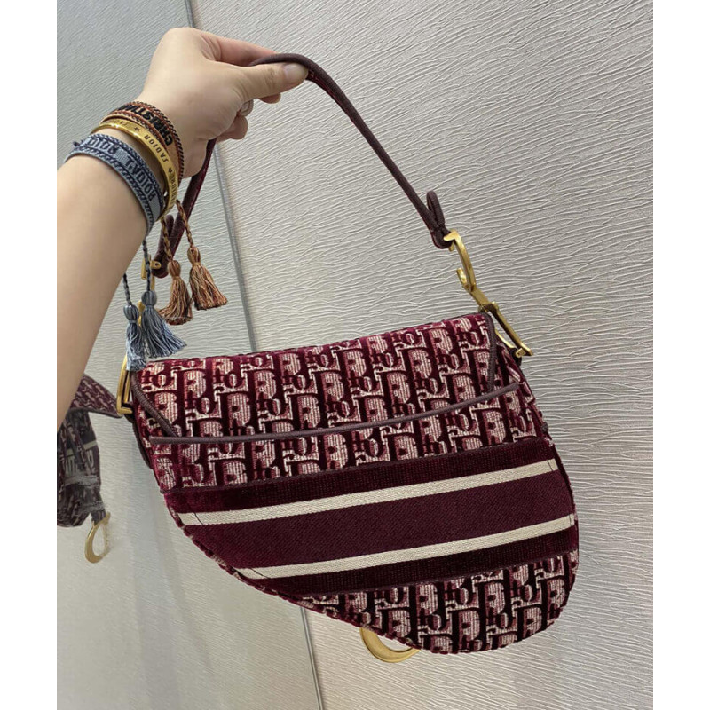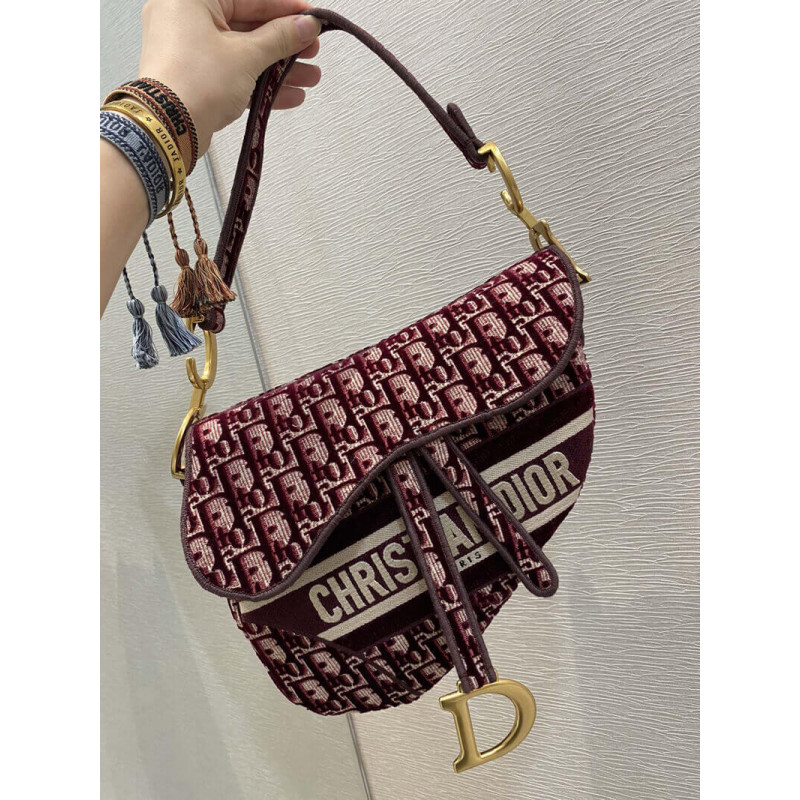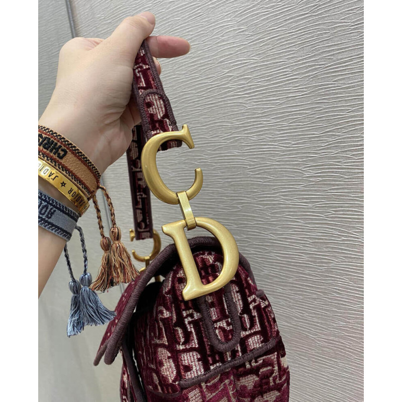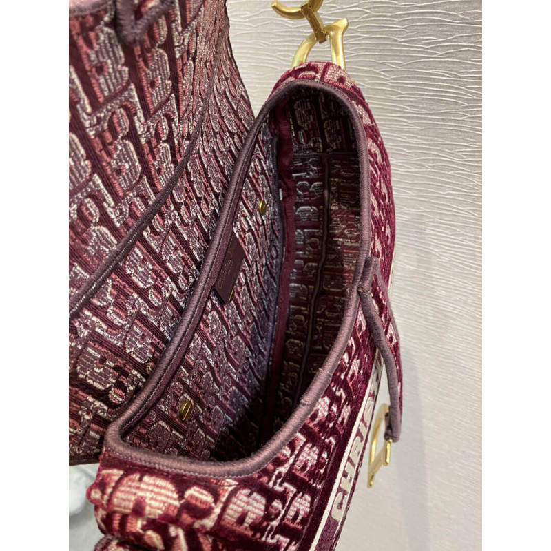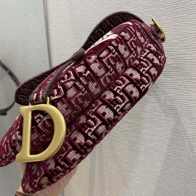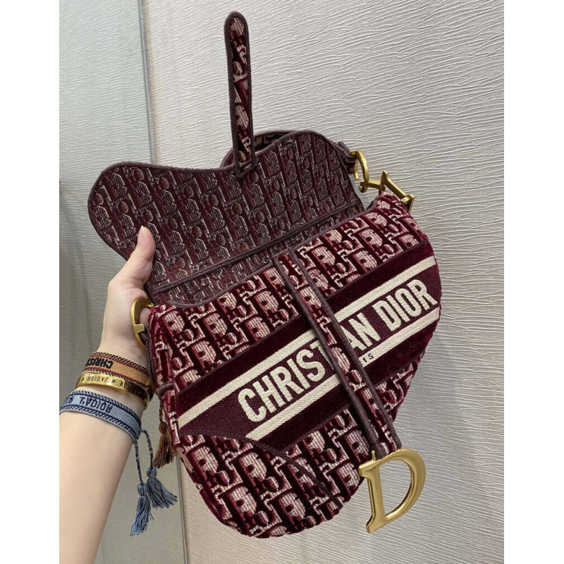 Maria Grazia Chiuri brings a fresh update to the iconic Saddle bag with an eye-catching design. This heritage style showcases the emblematic D -stirrup magnetic clasp and saddle flap with the signature CD structure on both sides of the handle, giving it an instantly modern feel. Crafted in blue velvet that is embroidered with the Dior Oblique pattern in matte cotton thread for a contrasting effect, it is embellished with antique gold-finish hardware. This medium style may be customized with alternative straps.