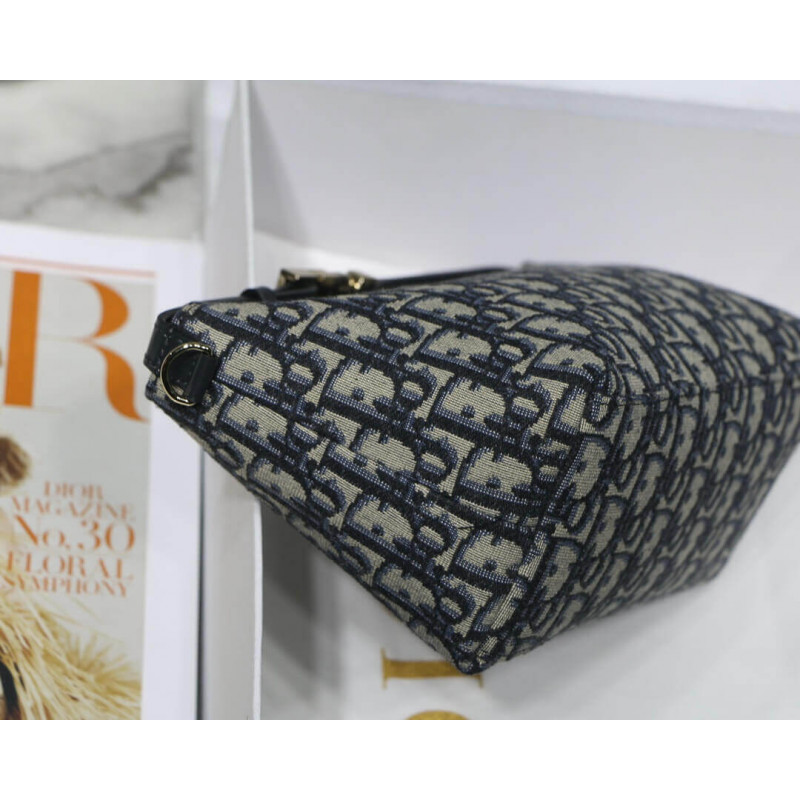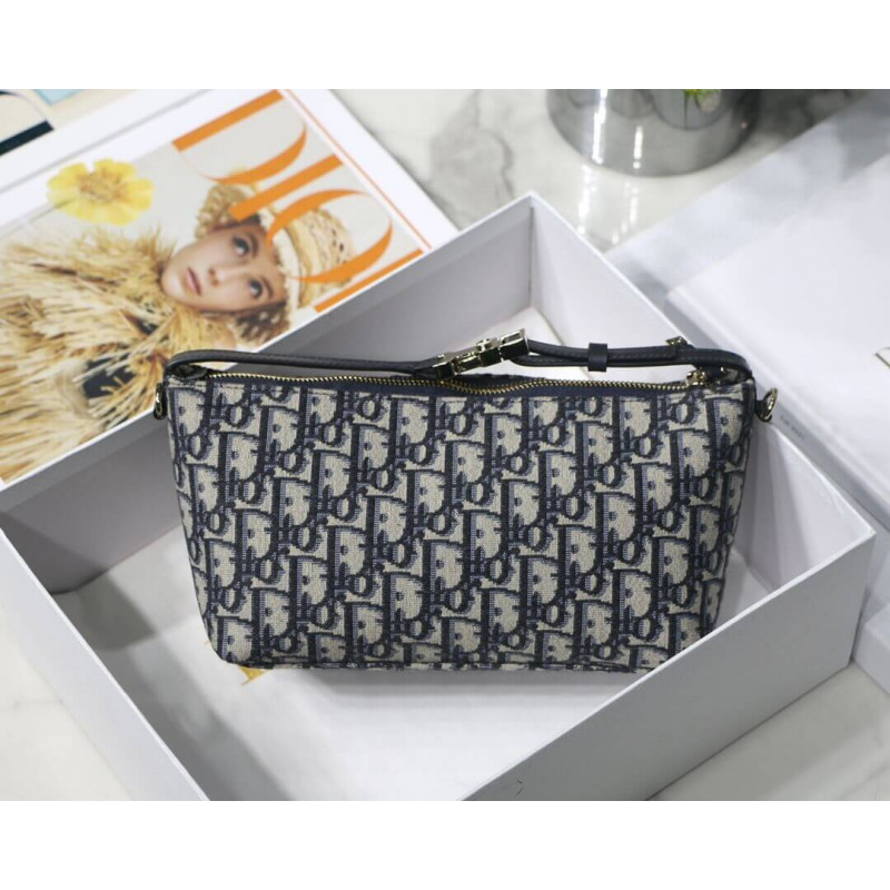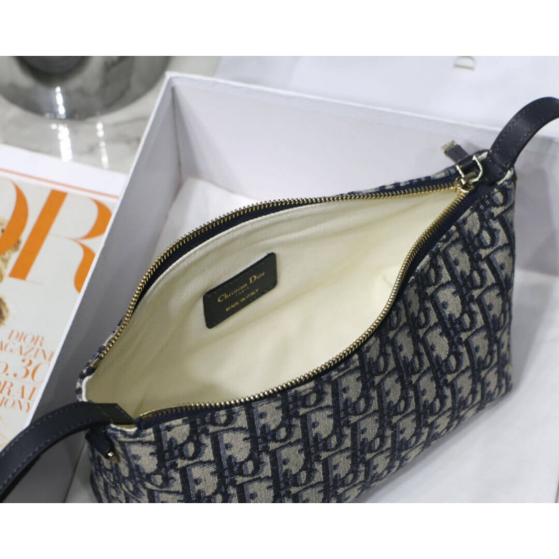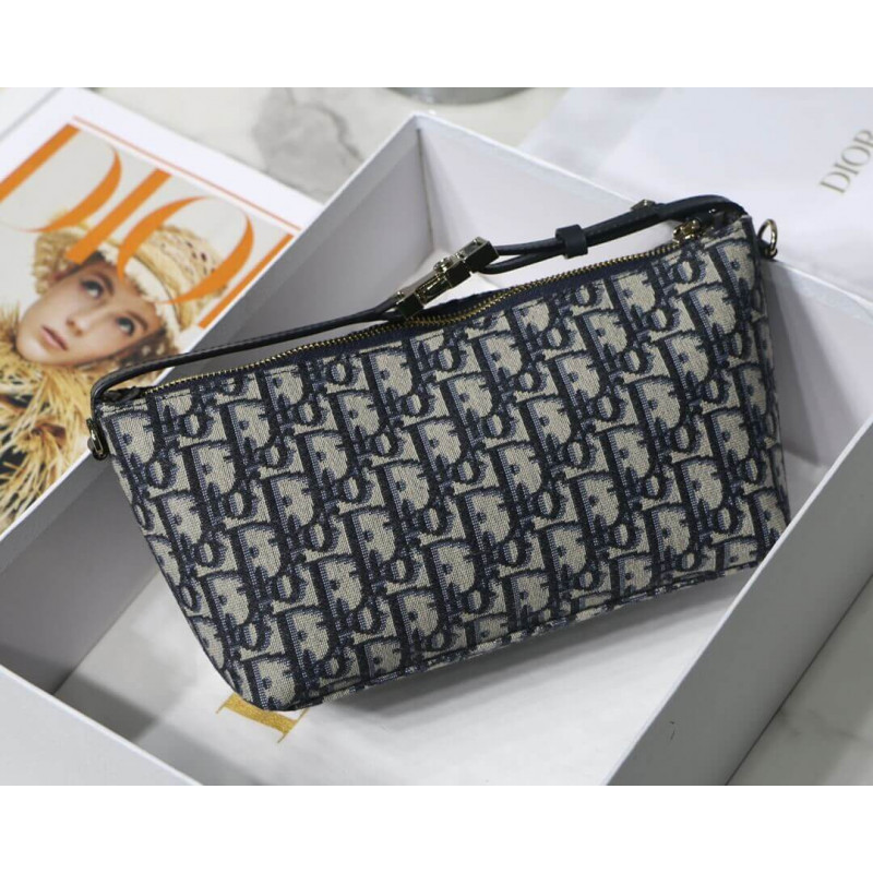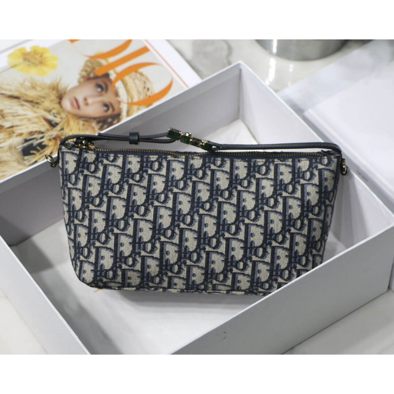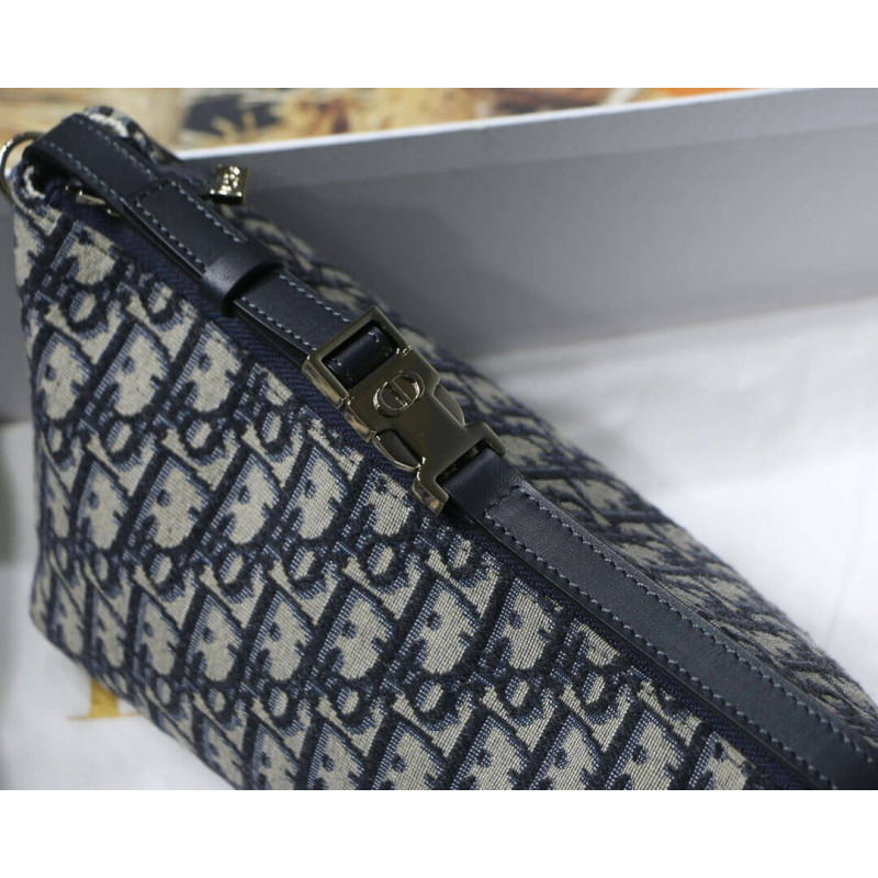Christian Dior Medium Diortravel Nomad Pouch in Blue Oblique Embroidery S5554