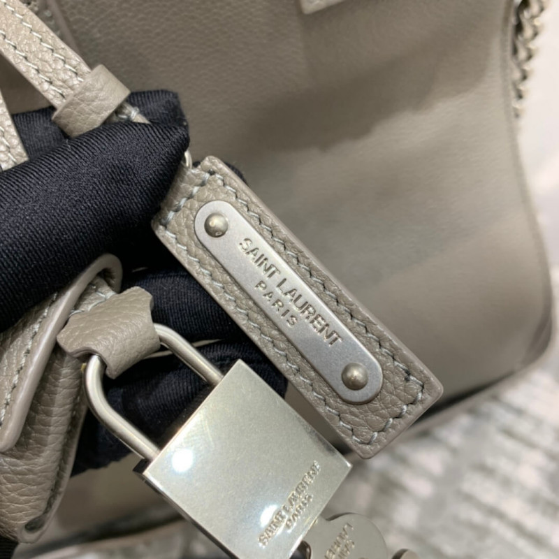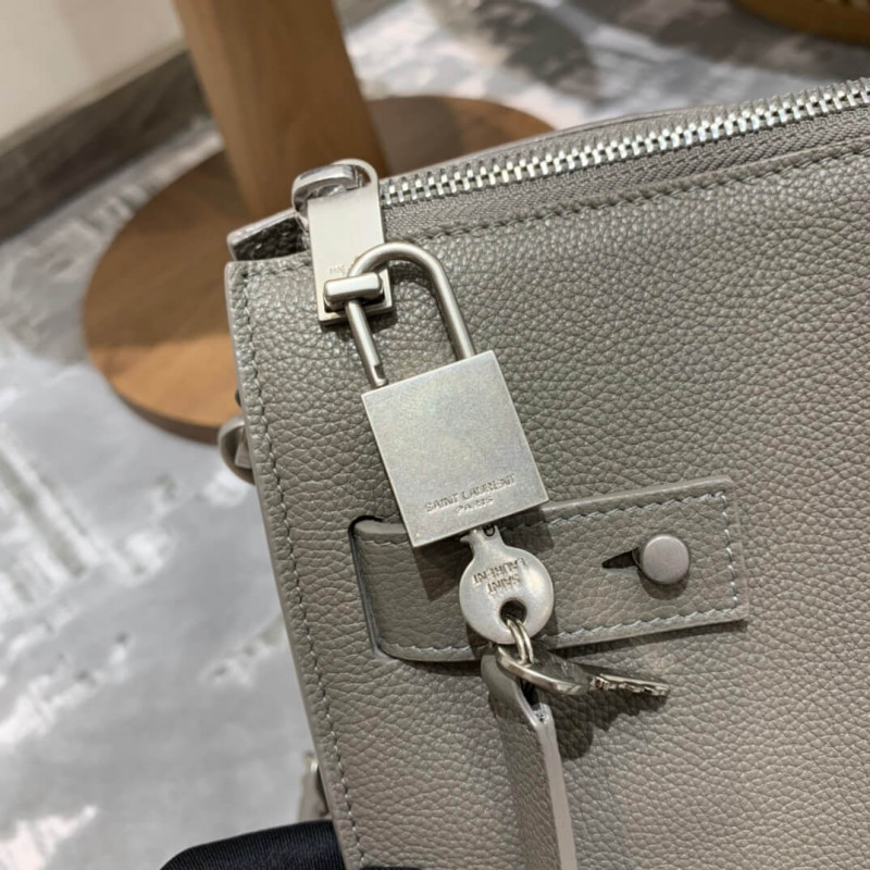 - Removable leather strap with saint laurent engraved metal plaque and leather encased padlock