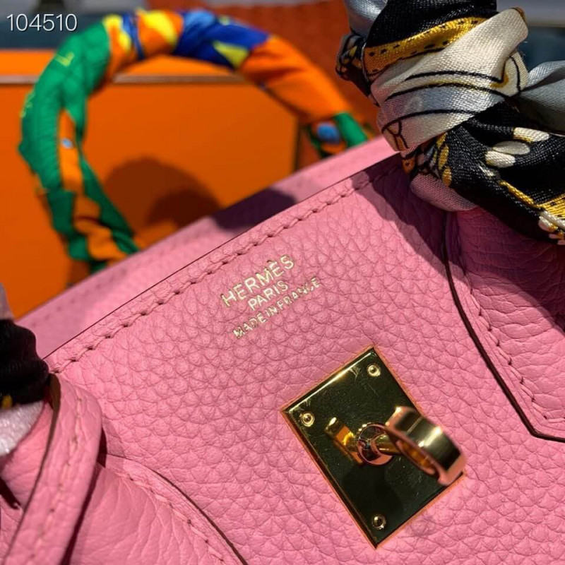 This Birkin has tonal stitching, a front toggle closure, a clochette with lock and two keys, and double rolled handles.
