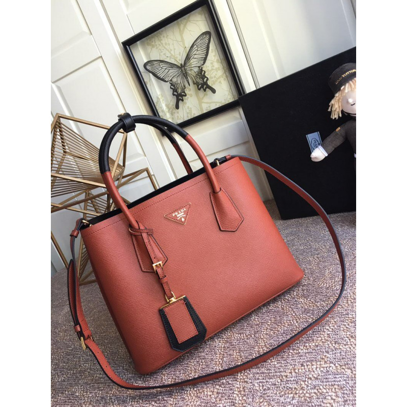 Prada Two-Tone Saffiano Leather Double Bag 1BG775 Black/Red