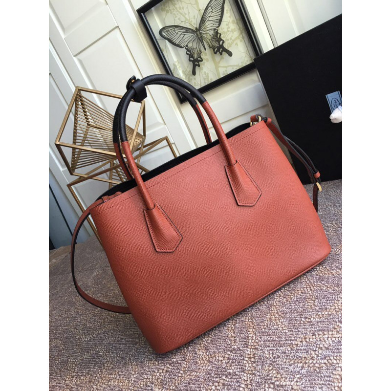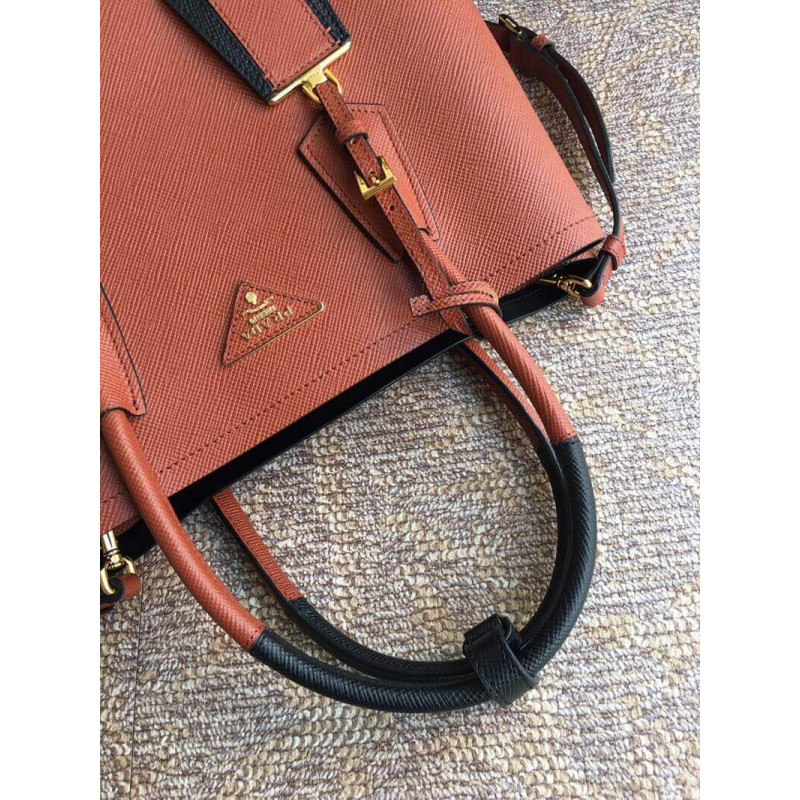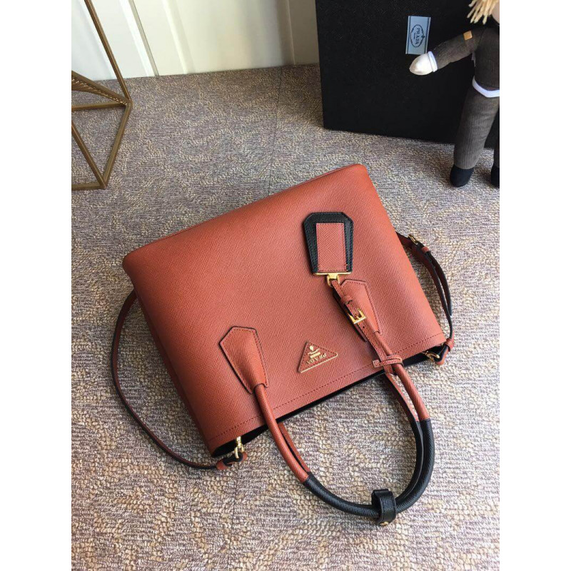 Prada Two-Tone Saffiano Leather Double Bag 1BG775 Rosewood/Black