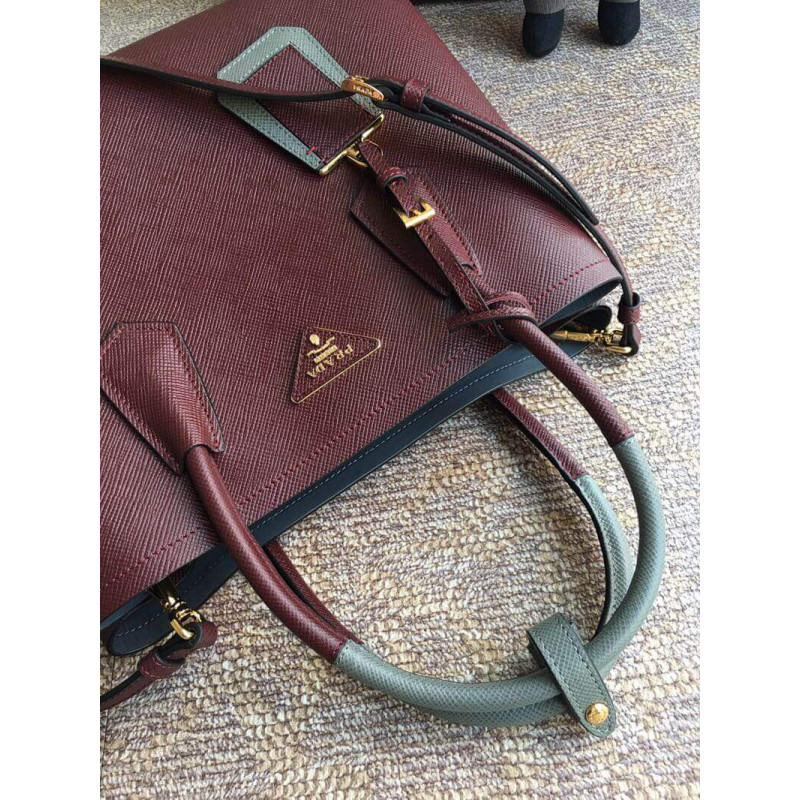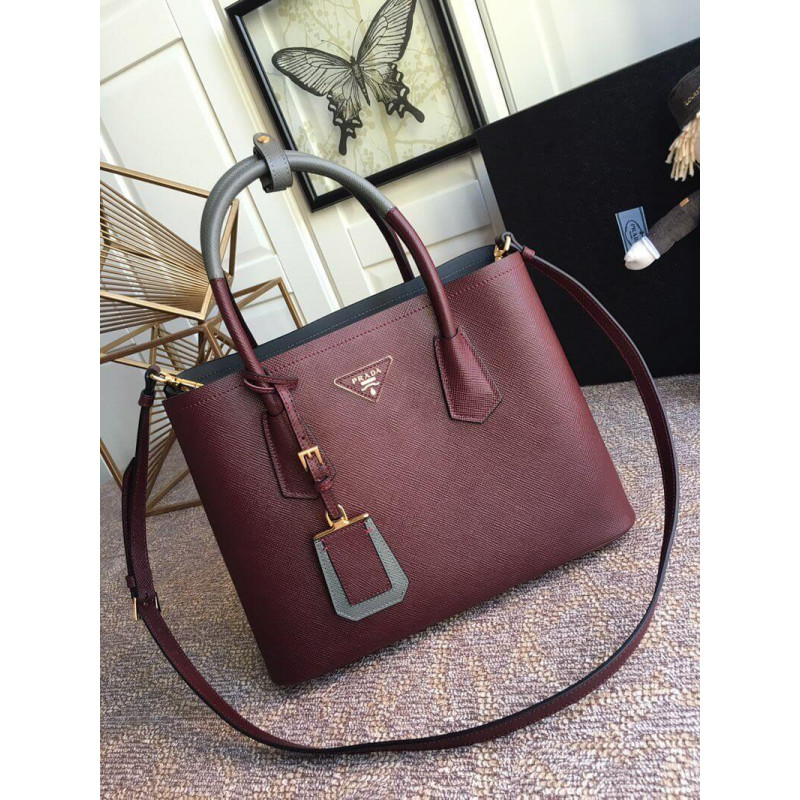 Prada Two-Tone Saffiano Leather Double Bag 1BG775 Burgundy/Grey